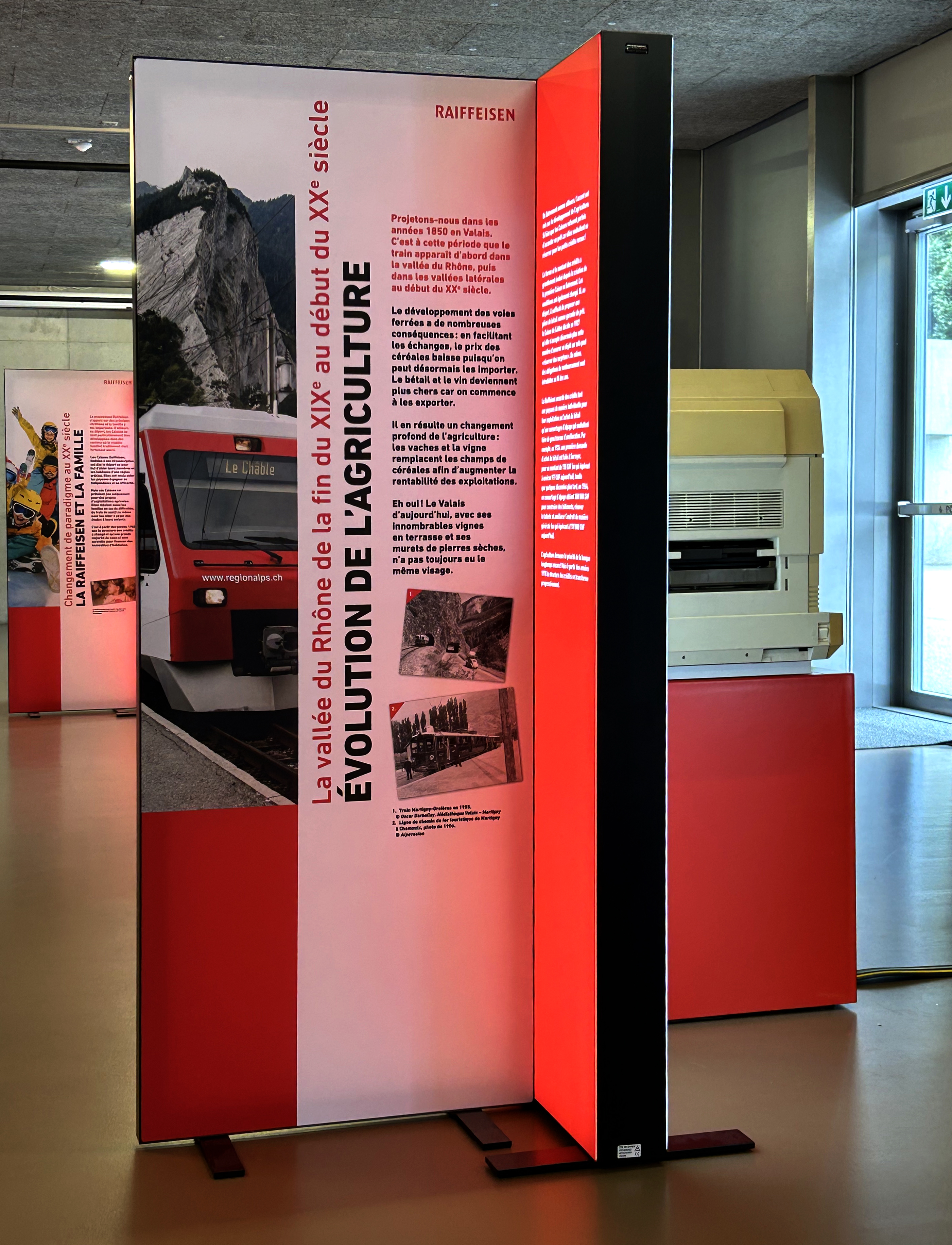 Conception, réalisation et développement d’une exposition retraçant l’historique de la banque Raiffeisen Entremont à l’occasion de leur 100 ans.