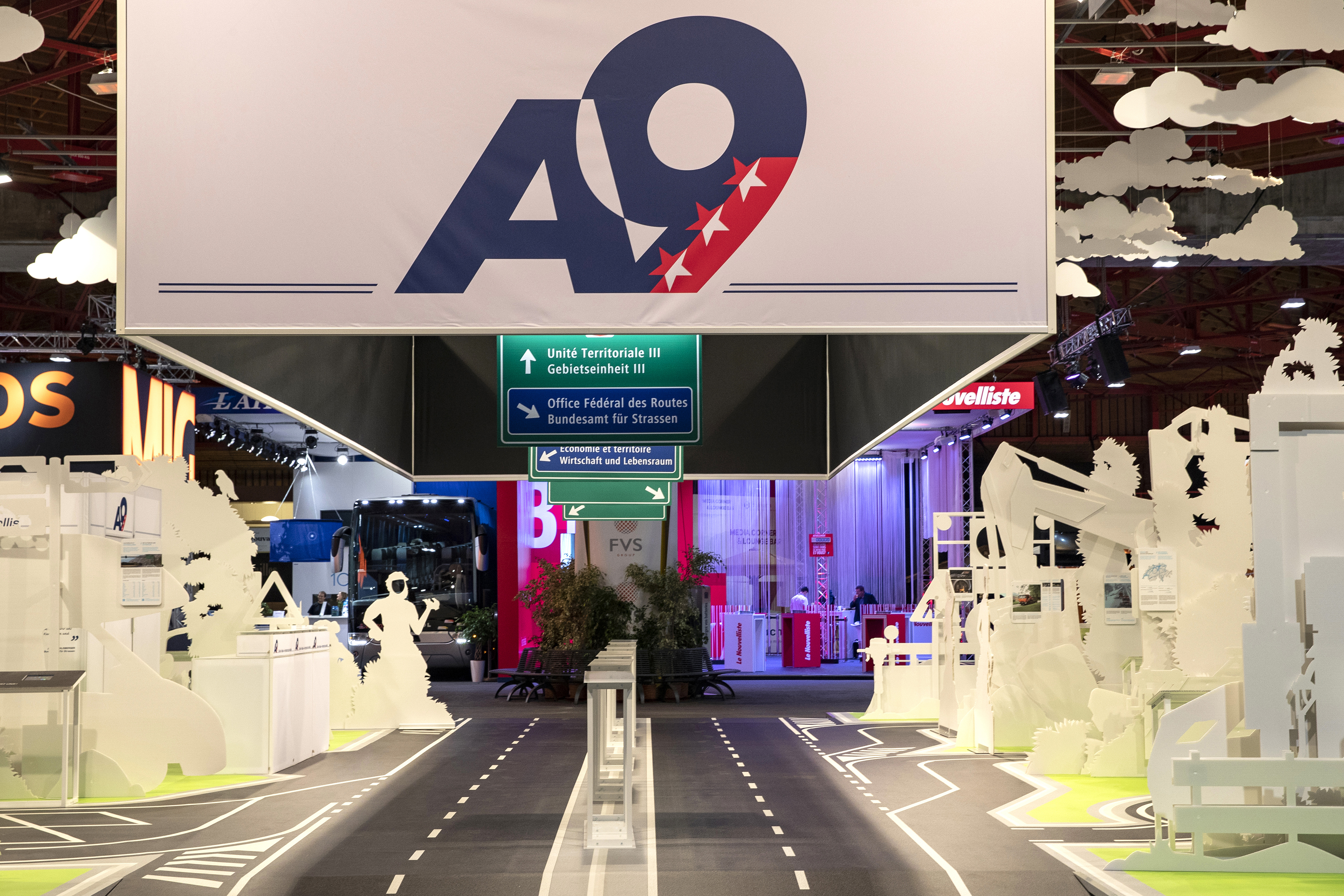 L’autoroute A9 se présente à la population valaisanne avec un stand innovant et contemporain.