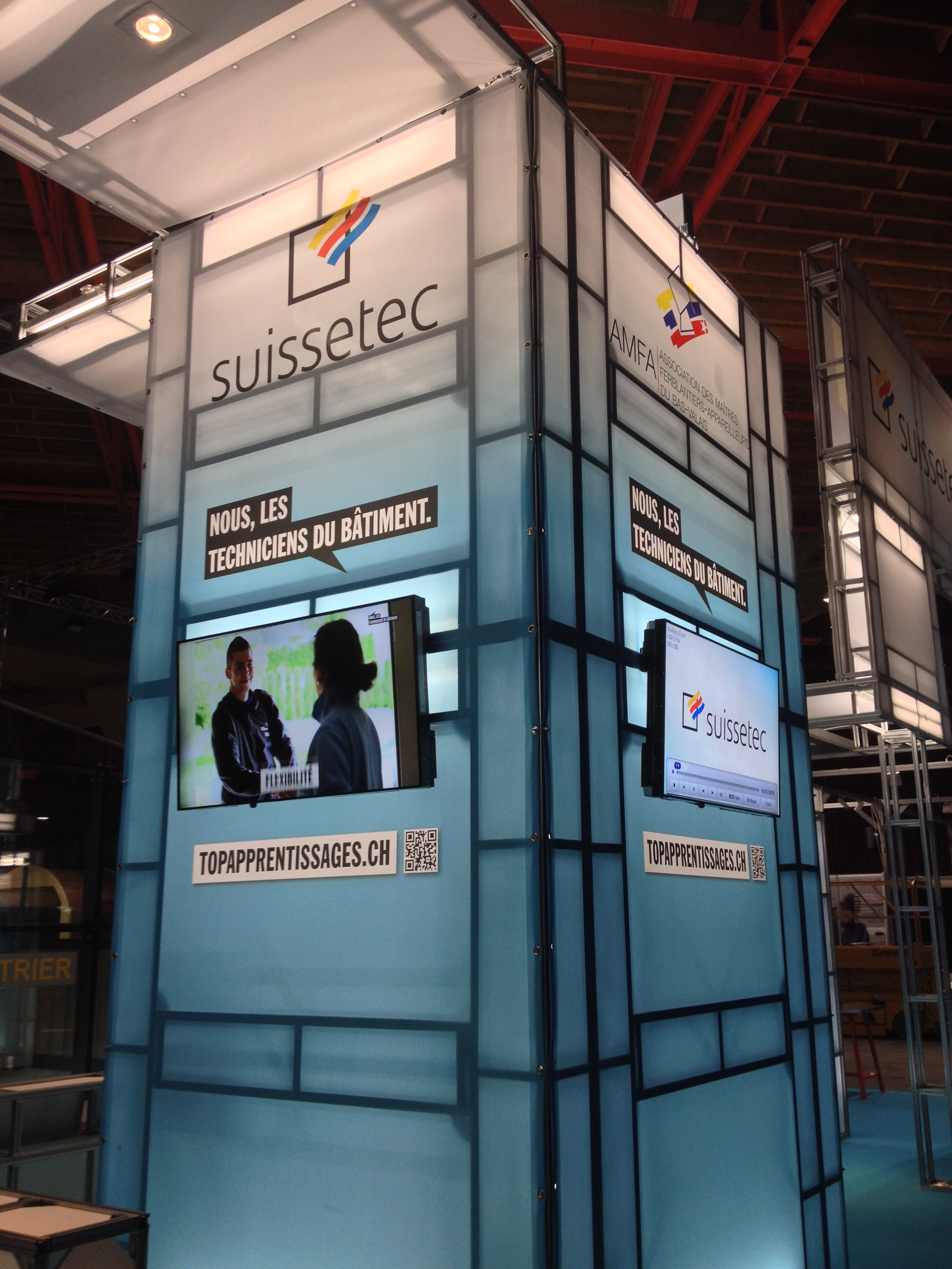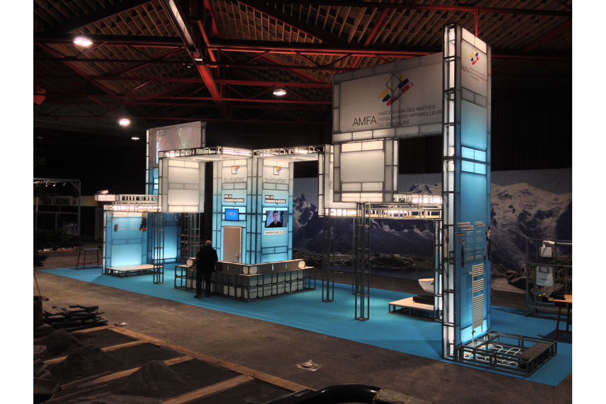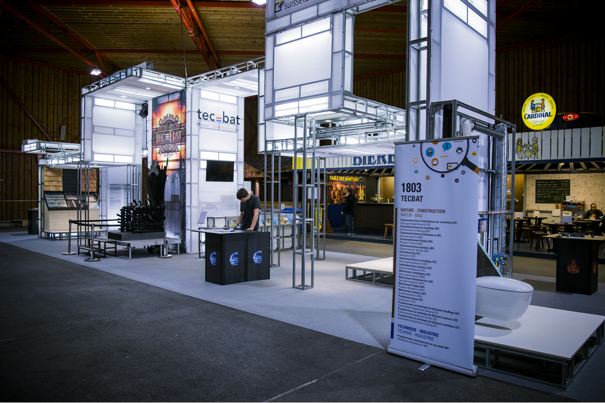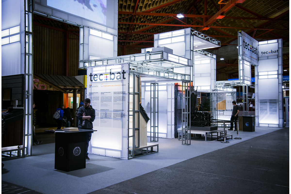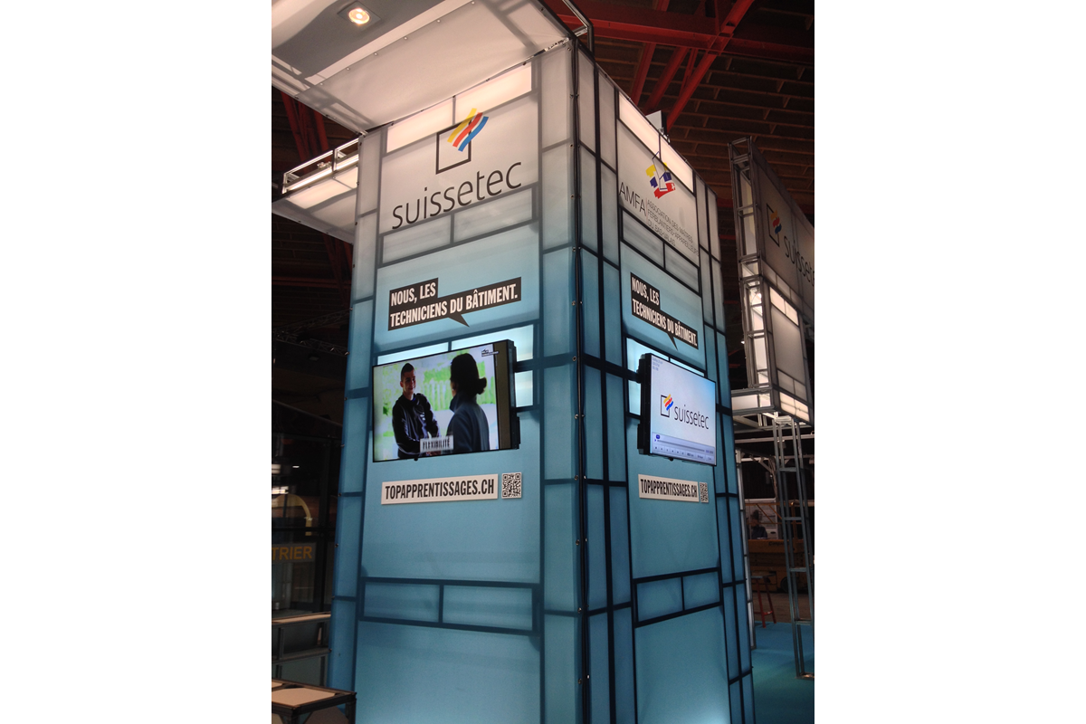 Conception et réalisation d’un stand promotionnel pour l’association des métiers de la construction SuisseTec lors du rendez-vous « Your Challenge », à Martigny.