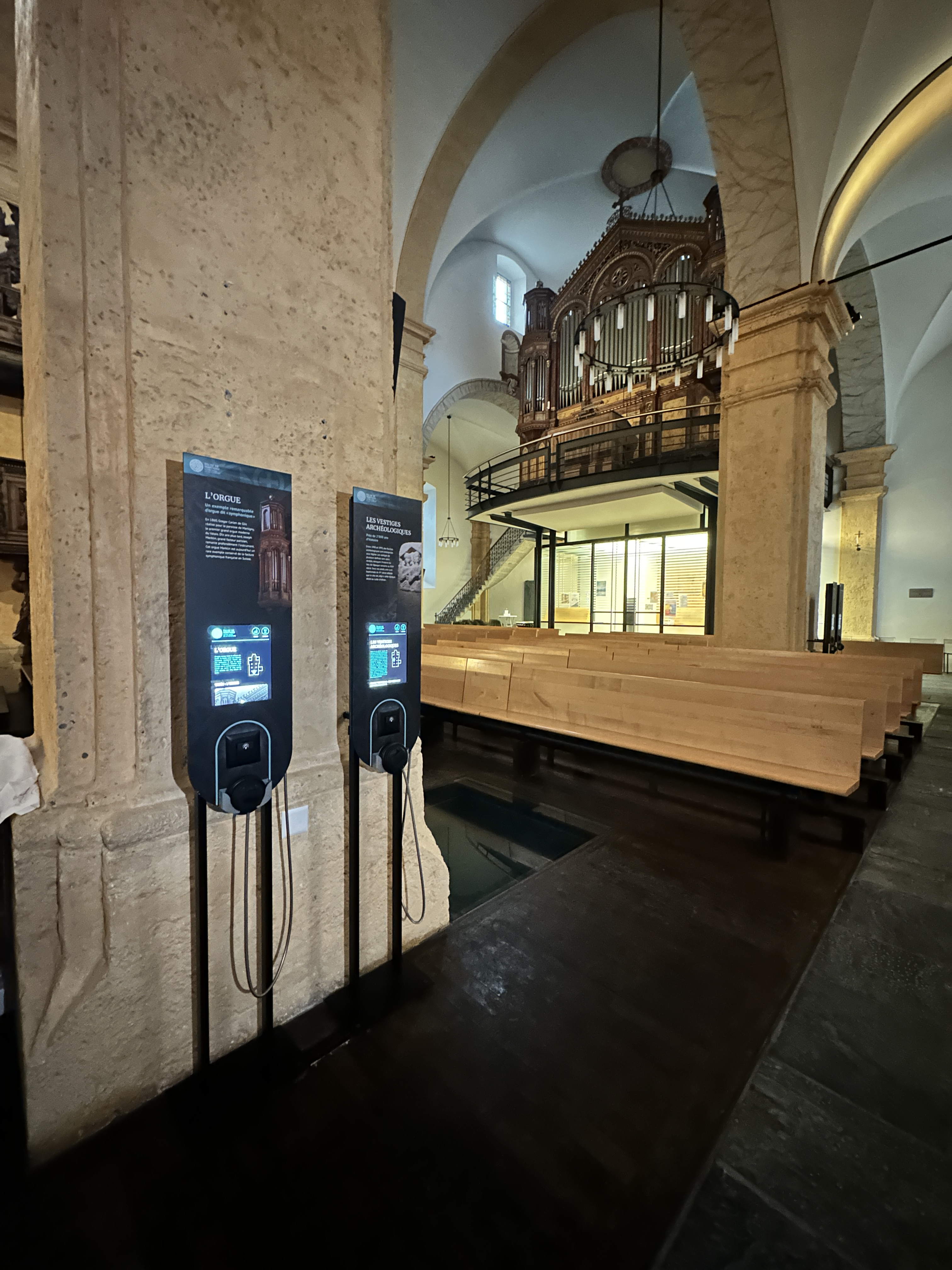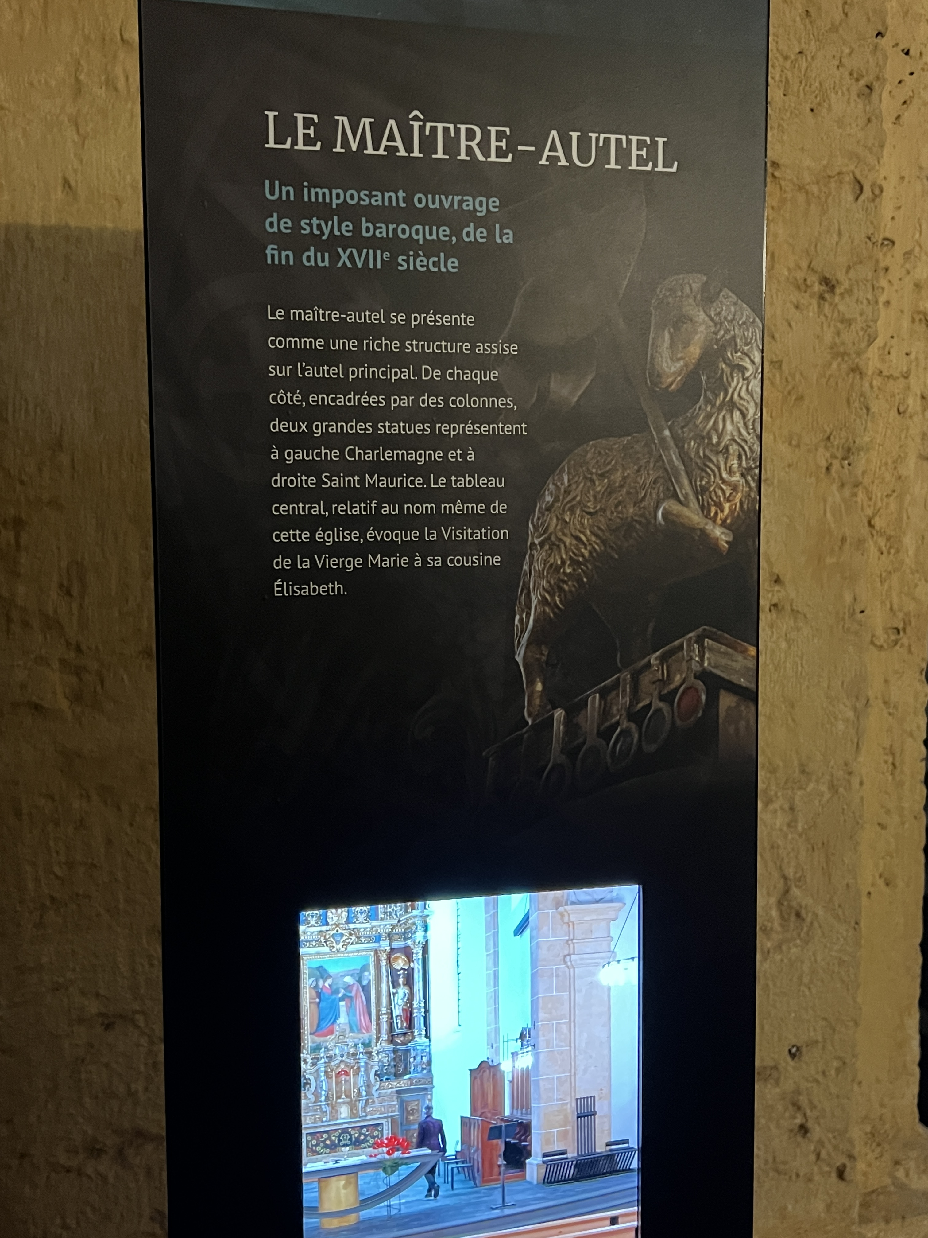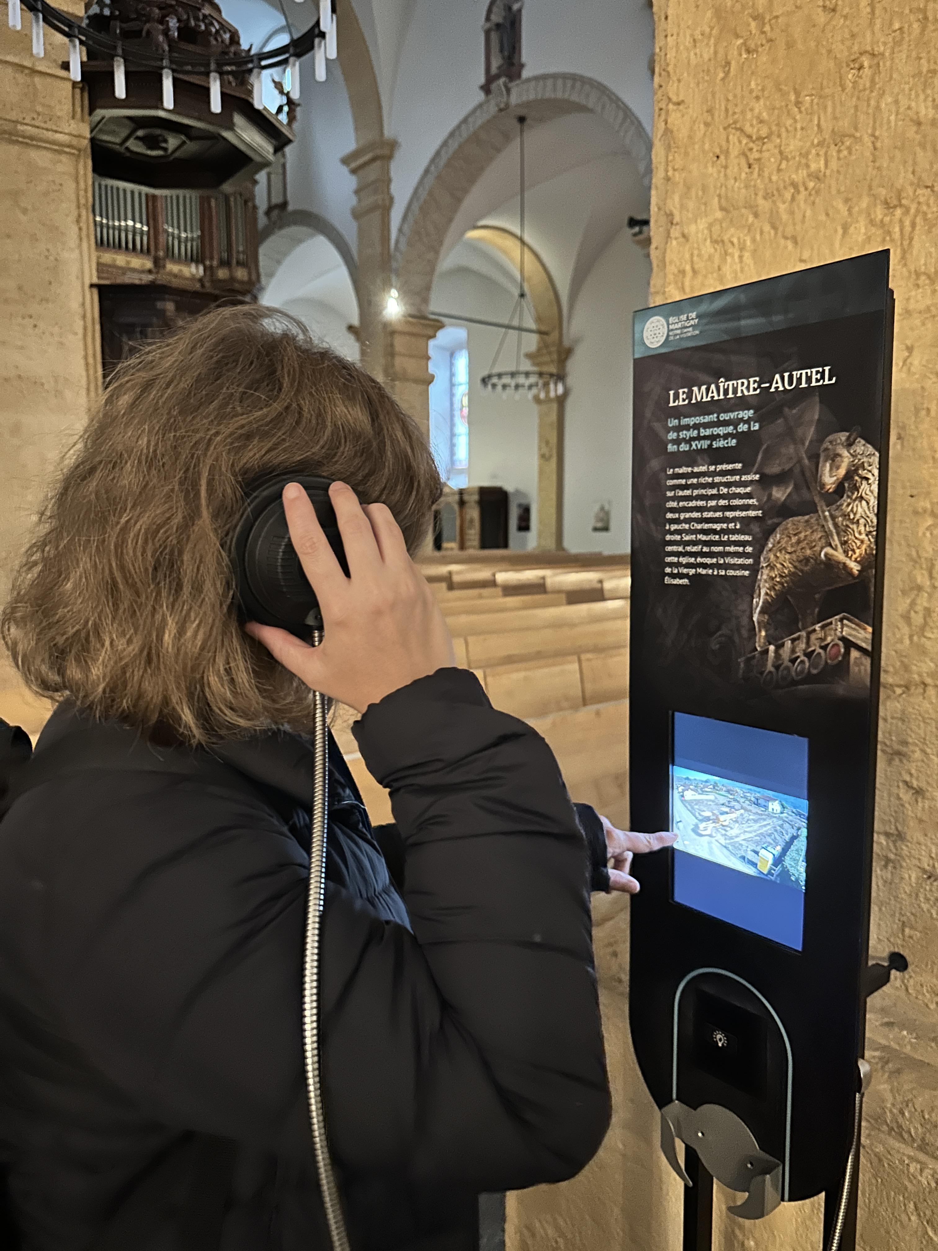 La visite permet d’en savoir sur les particularités de l’église. Grâce aux totems interactifs présents dans la nef, vous pourrez accéder à des vidéos et des informations concernant son histoire et ses trésors. Des boutons interactifs permettant d’éclairer les différentes thématiques sont également intégrés aux totems.