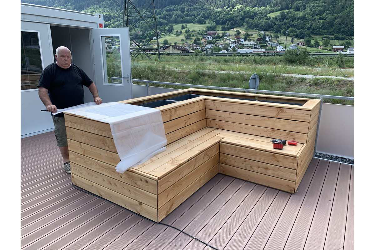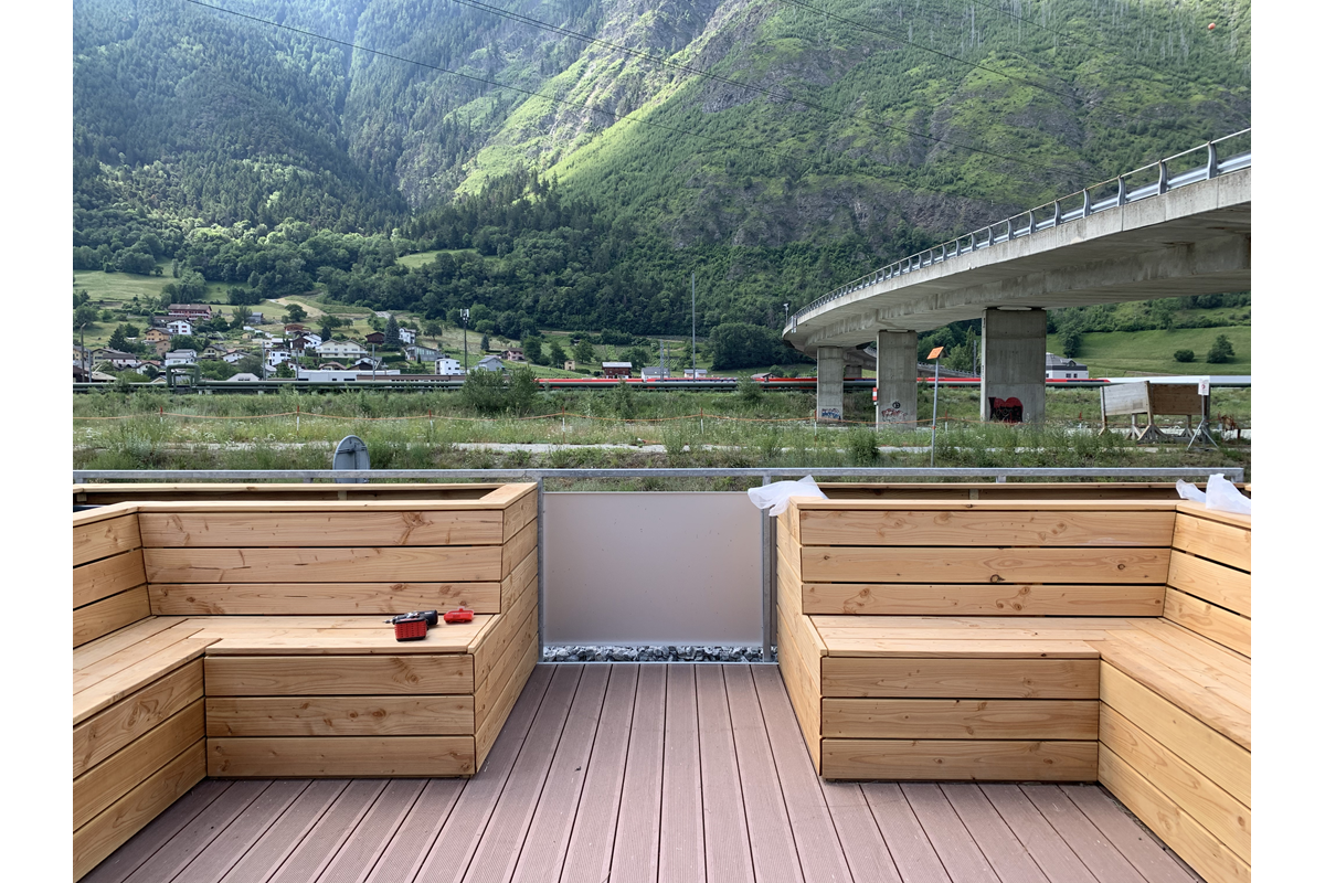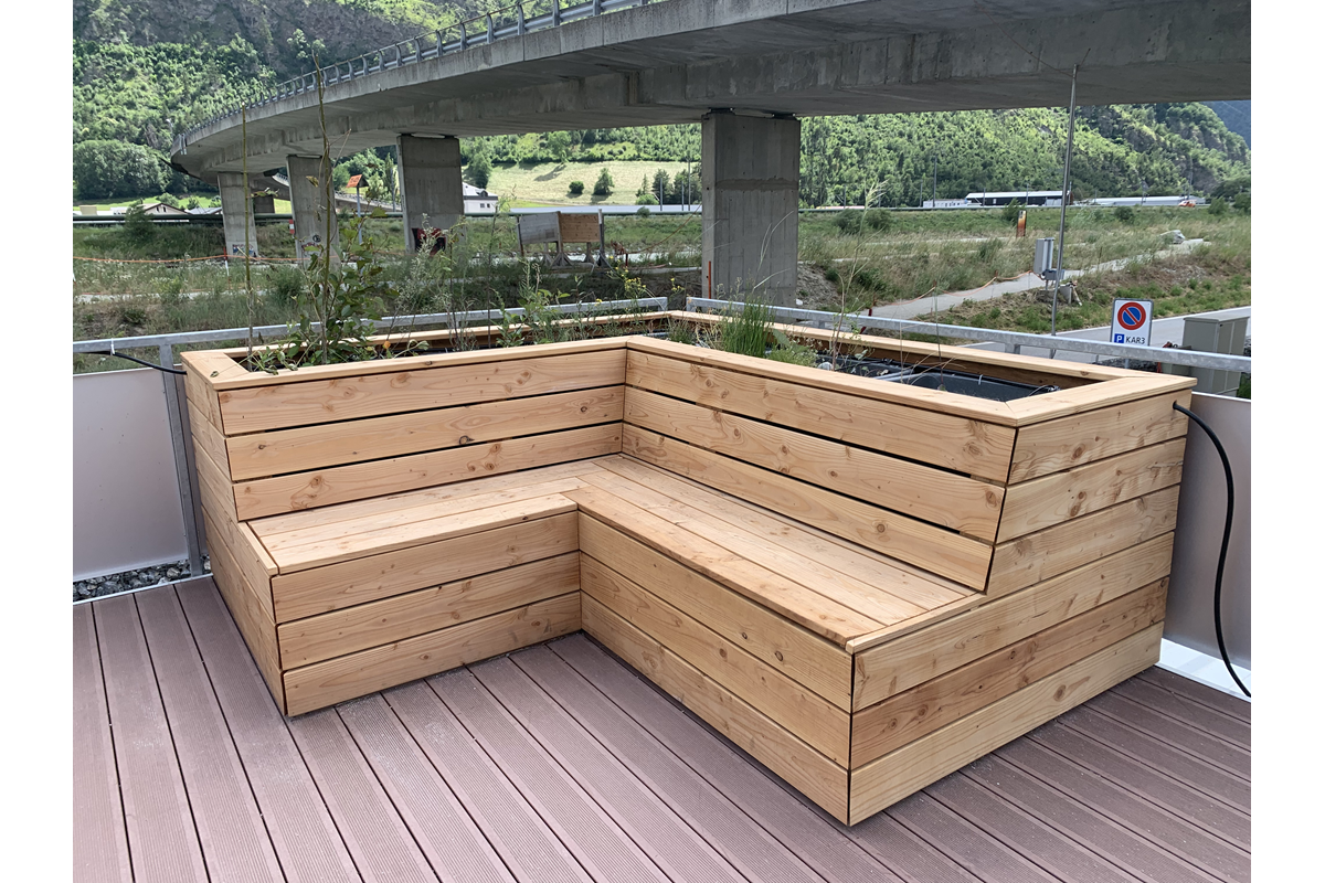 Conception et réalisation de mobilier pour l’aménagement de la terrasse du centre d’information Rhône 3.