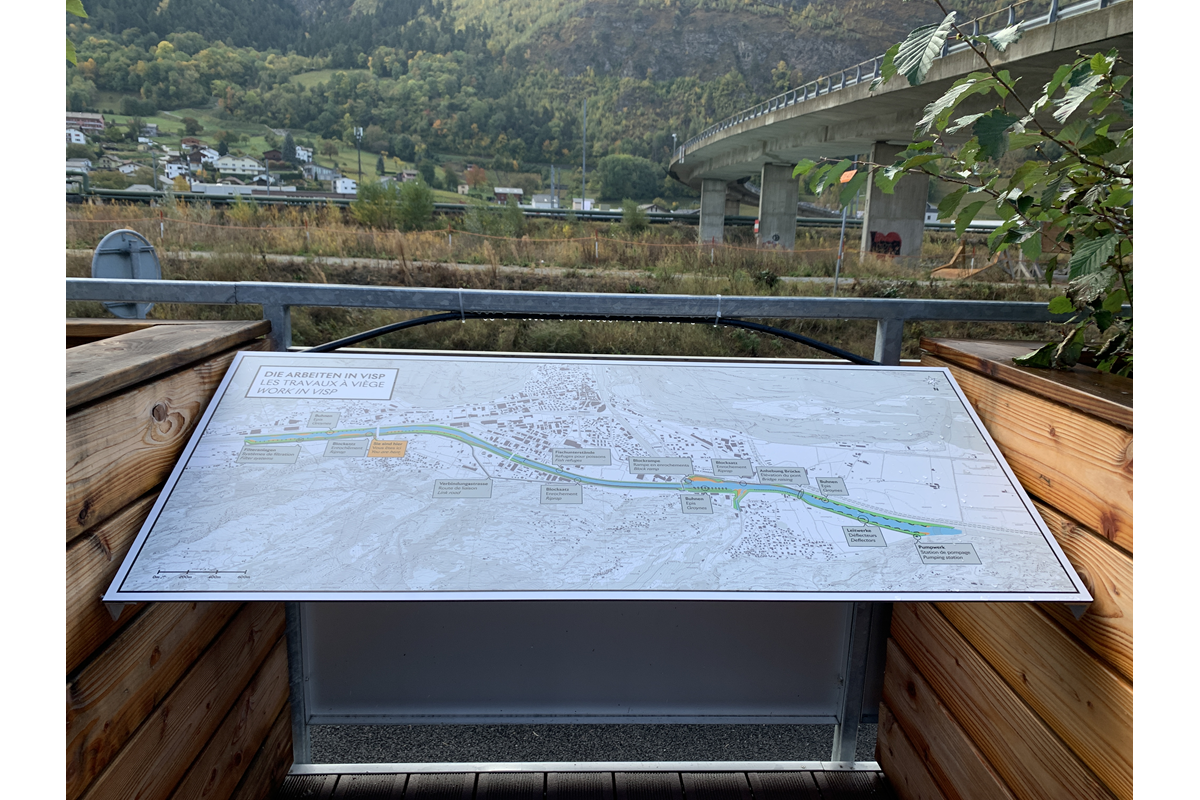L’aménagement propose un coin de détente et de contemplation confortable et convivial. Les bancs contiennent des bacs intégrés dans lesquels sont présentés des plantes typiques que l’on peut rencontrer sur les berges du Rhône. En complément, une table didactique présente une rétrospective des travaux entrepris dans la région.