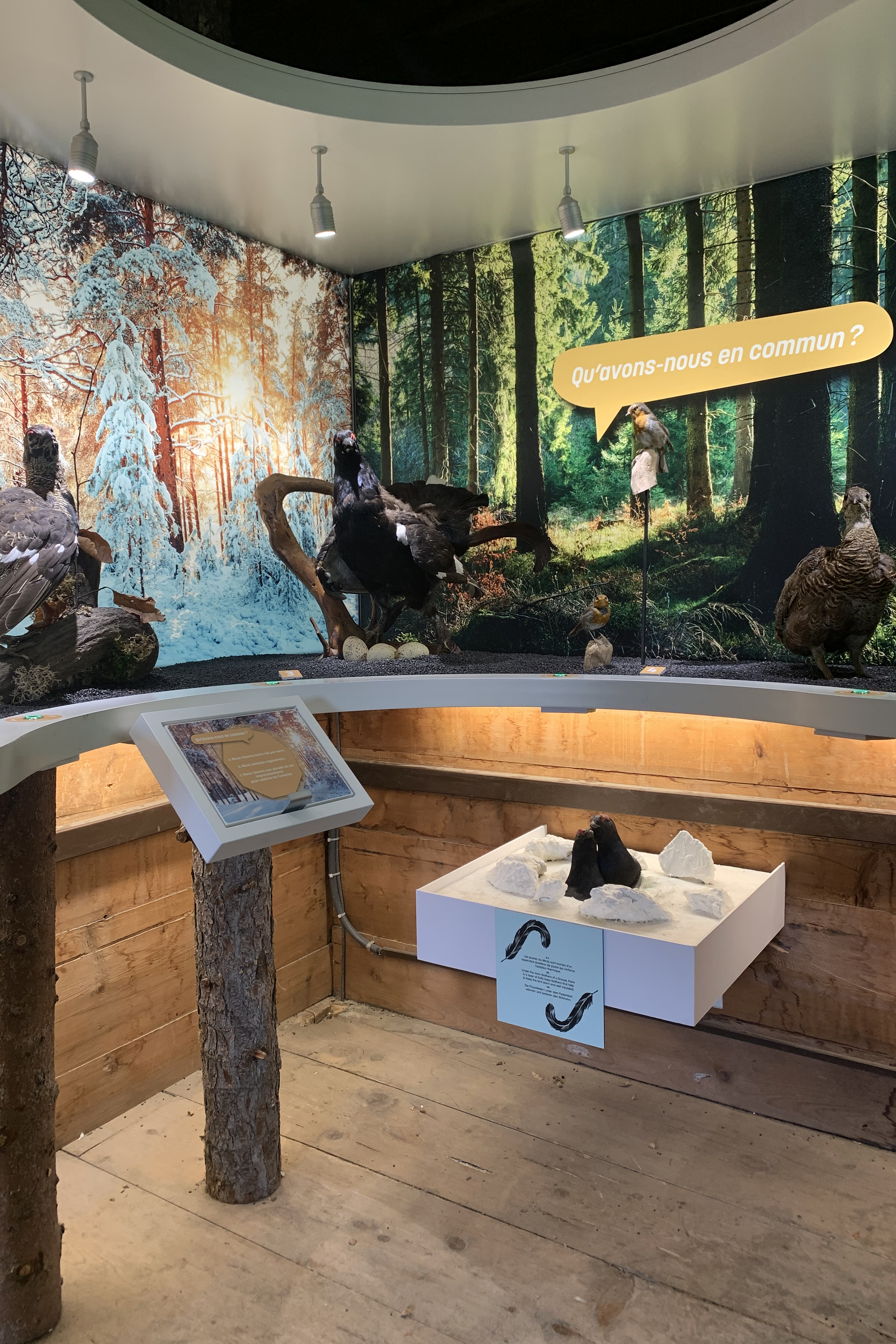 L’exposition présentait, dans un design minimaliste, les espèces d’oiseaux qui peuplent nos forêts. L’exposition a été développée pour fournir une expérience complète, avec notamment la création d’une application pour smartphone présentant la faune et la flore valaisanne, et un dispositif interactif permettant d’écouter le chant de chaque oiseau présenté.