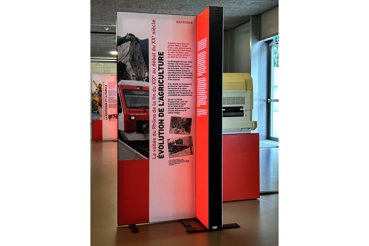 Conception, réalisation et développement d’une exposition retraçant l’historique de la banque Raiffeisen Entremont à l’occasion de leur 100 ans.