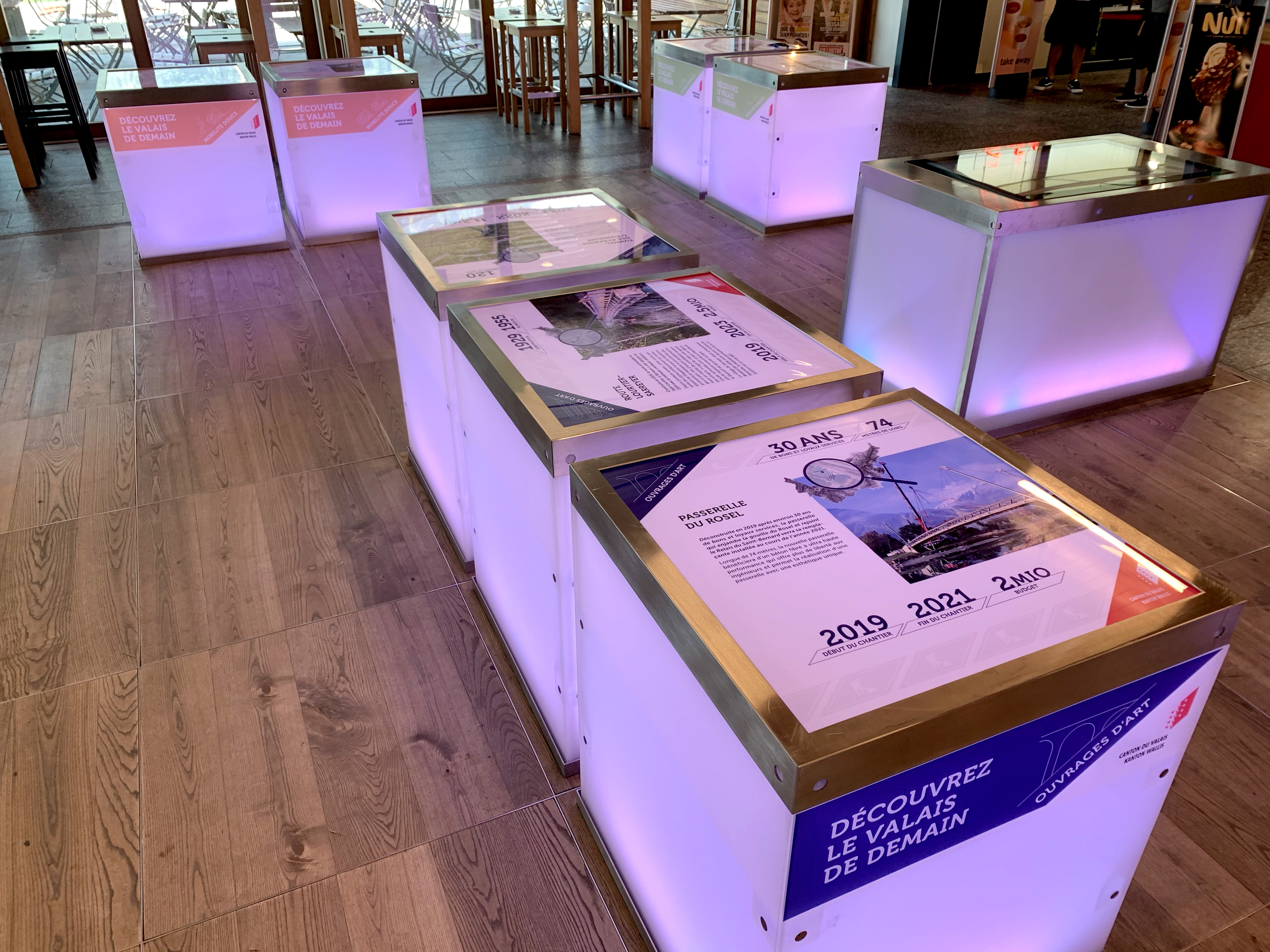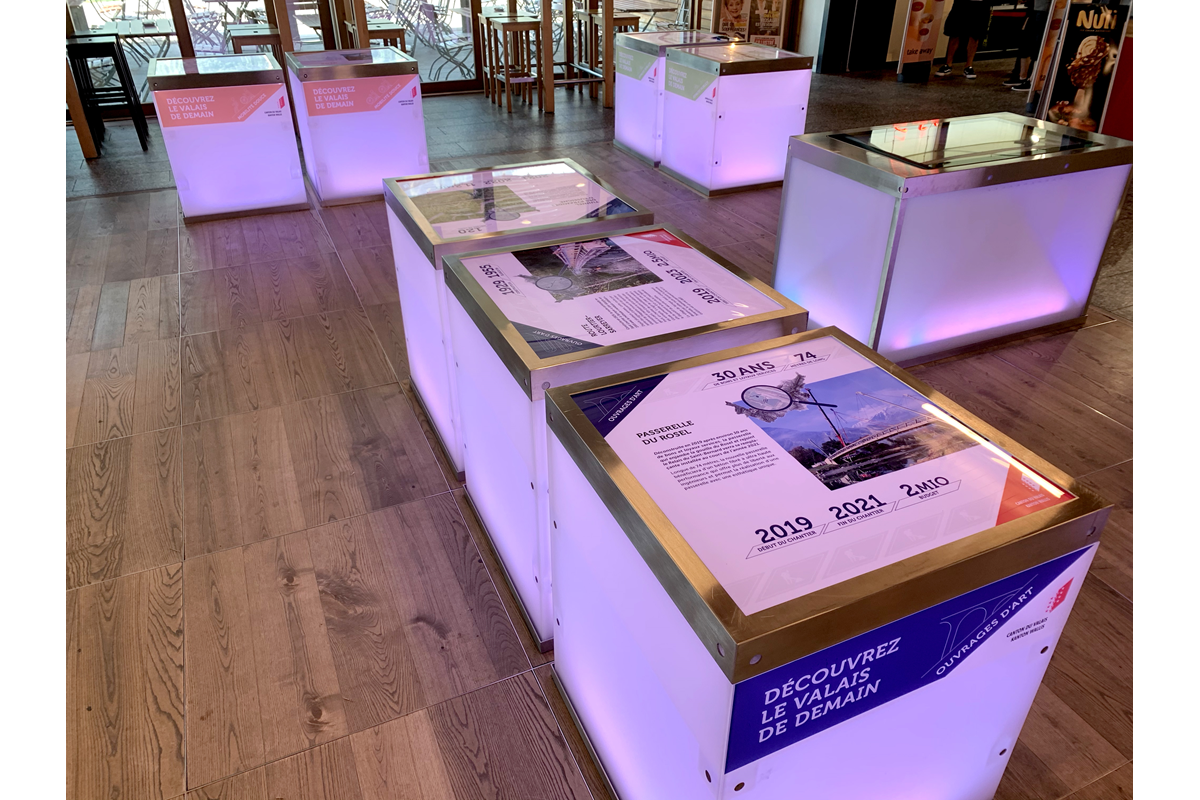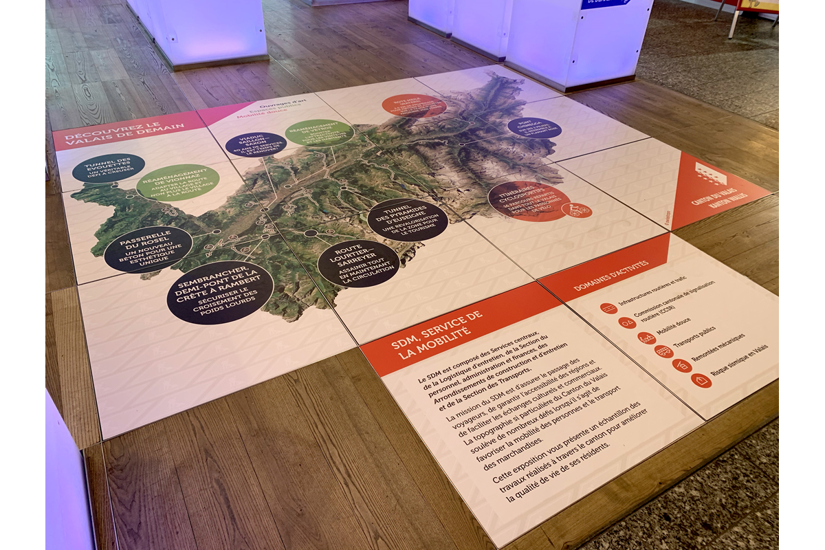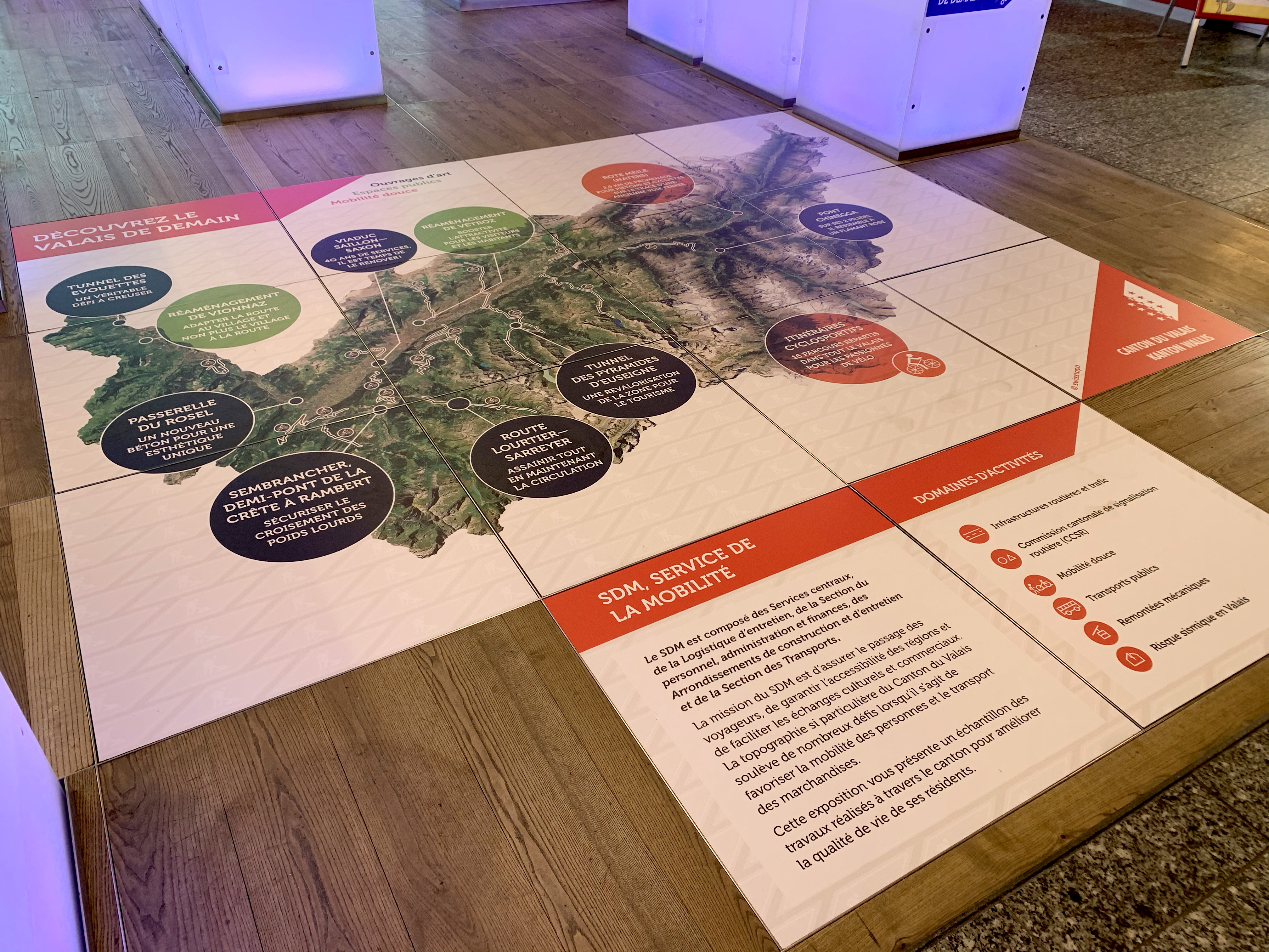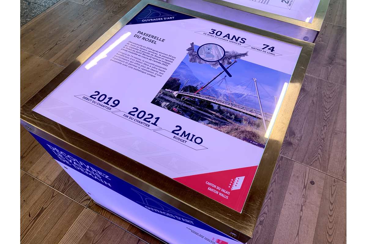 L’exposition « Le Valais de Demain » a été réalisée dans le cadre de l'installation de la nouvelle passerelle du Rosel en collaboration avec le Service de la Mobilité de l’État du Valais. En plus de présenter les particularités de la nouvelle passerelle du Rosel, elle présentait également d’autres importants projets d’urbanisation valaisan comme le tunnel des pyramides d’Euseigne ou encore le réaménagement du village de Vionnaz.