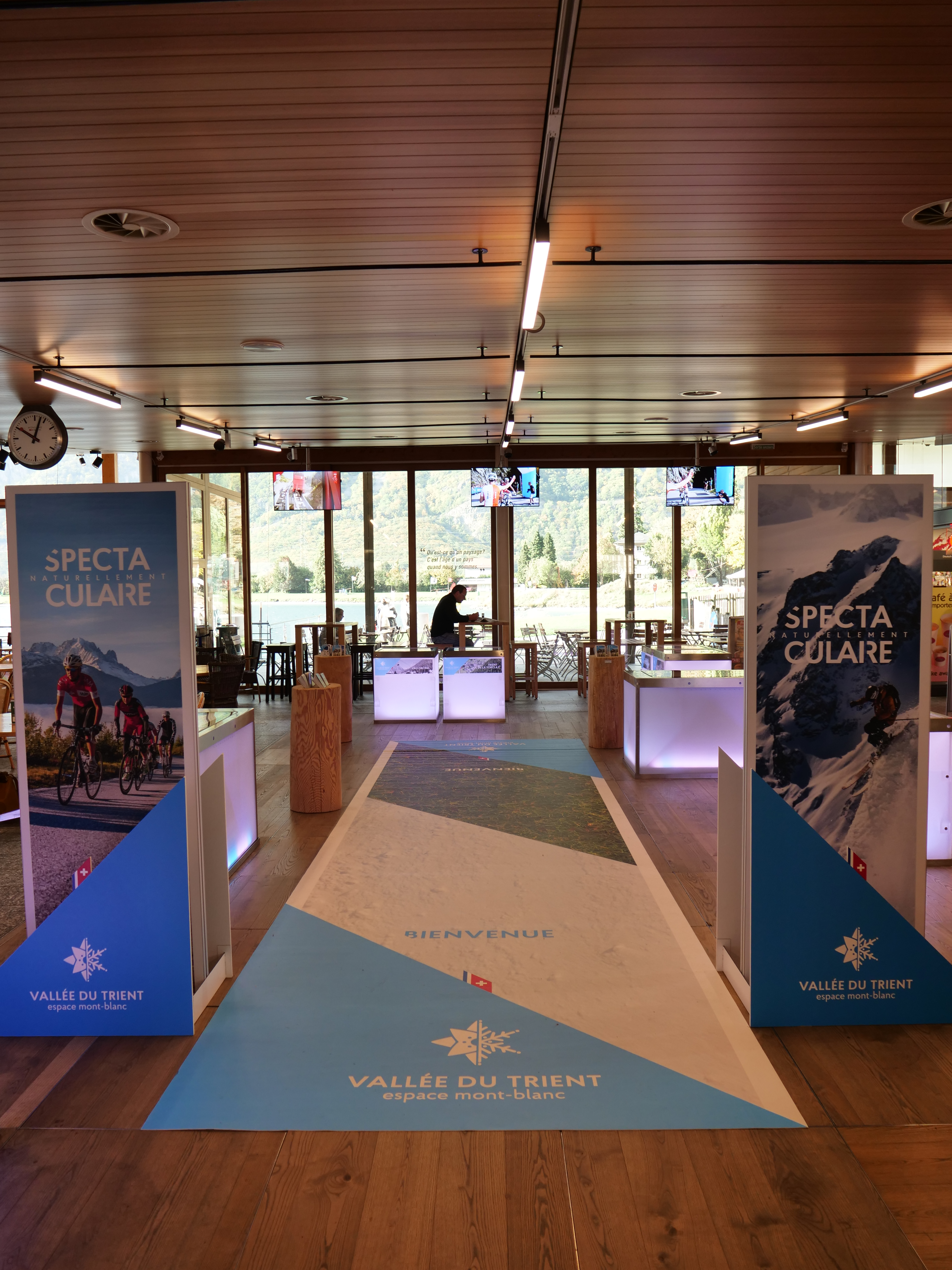 Conception d’une exposition promotionnelle pour l’espace centrale du Relais du St-Bernard, ayant pour but de promouvoir la Vallée du Trient auprès des touristes.