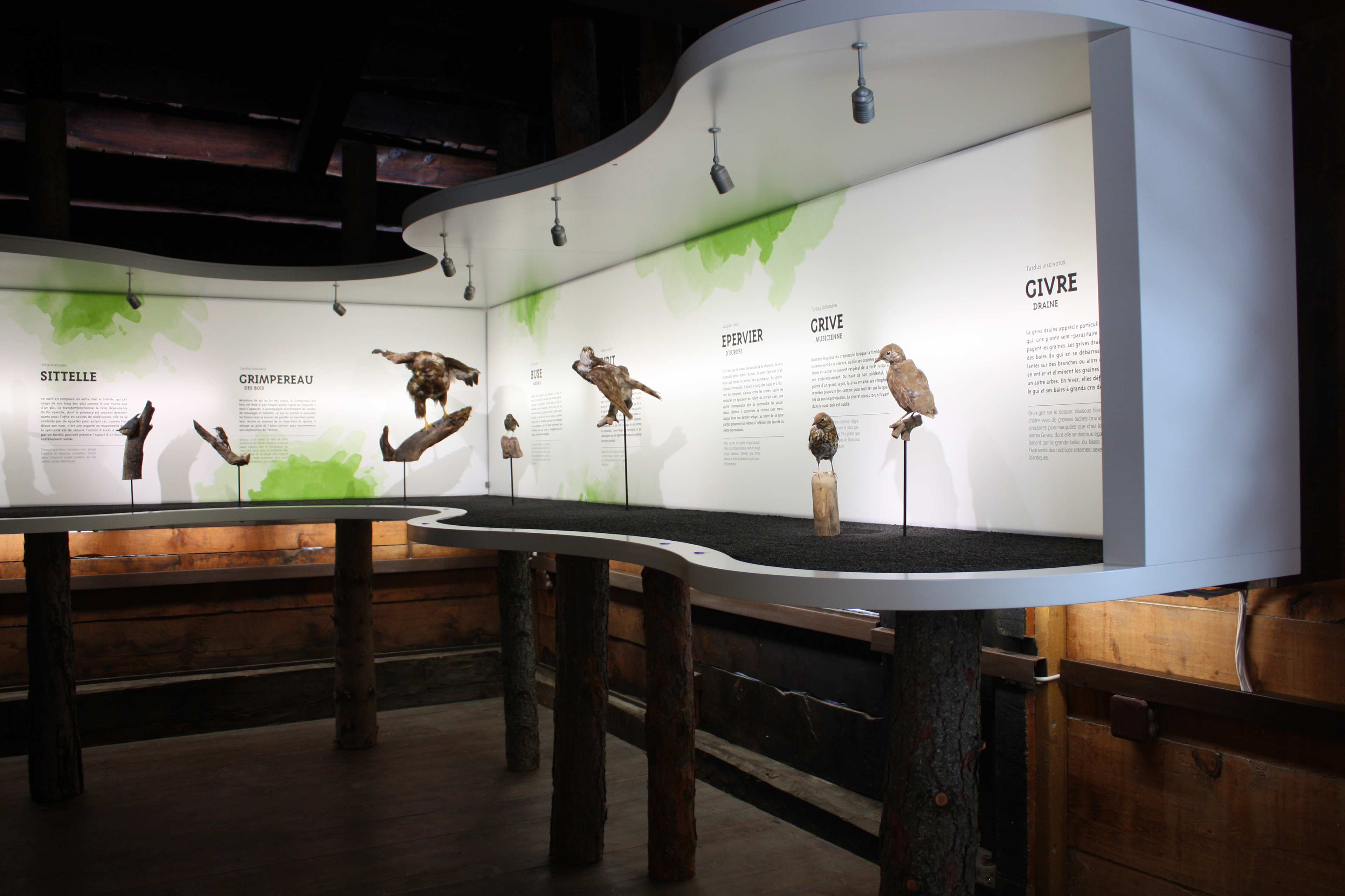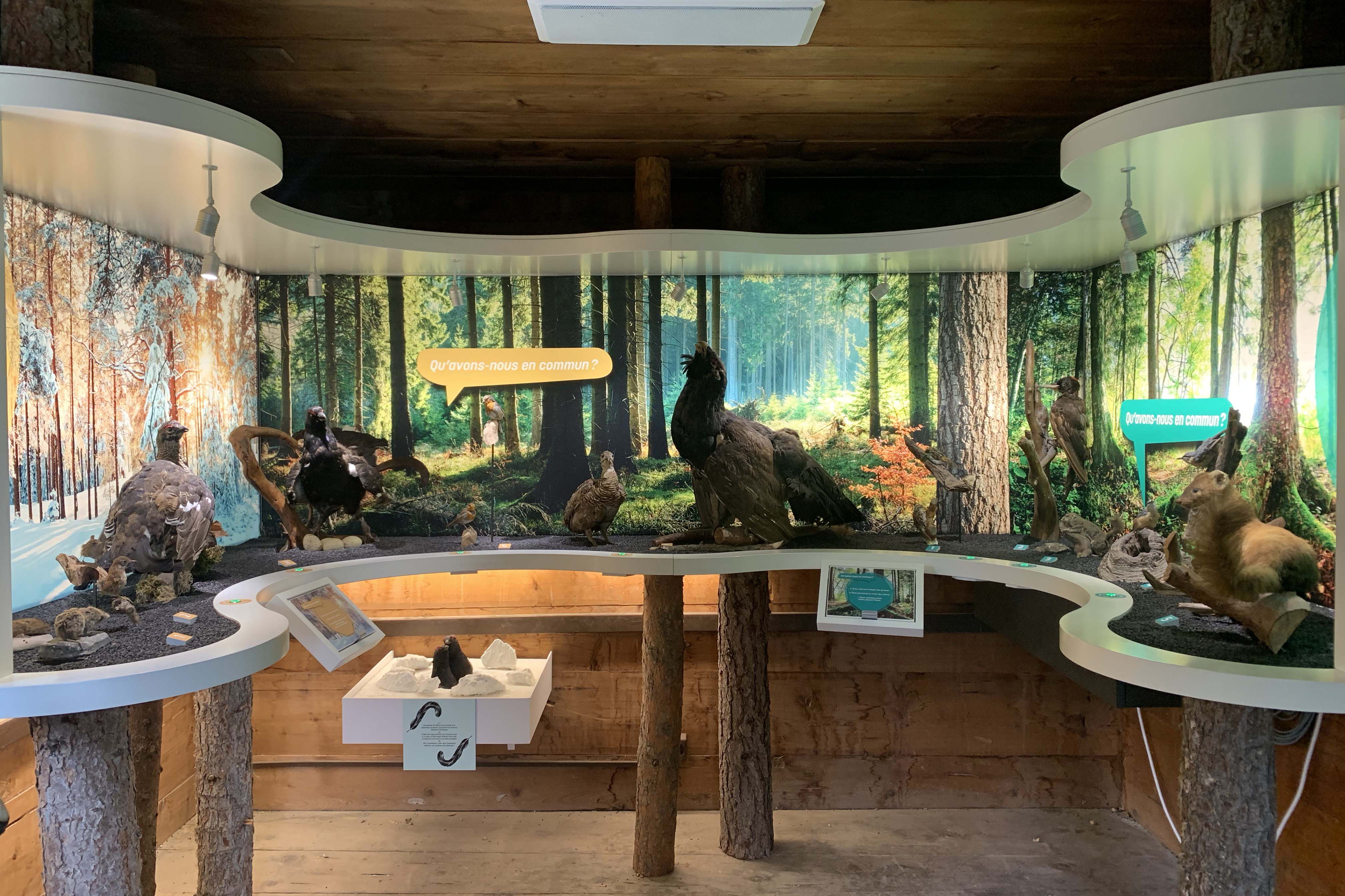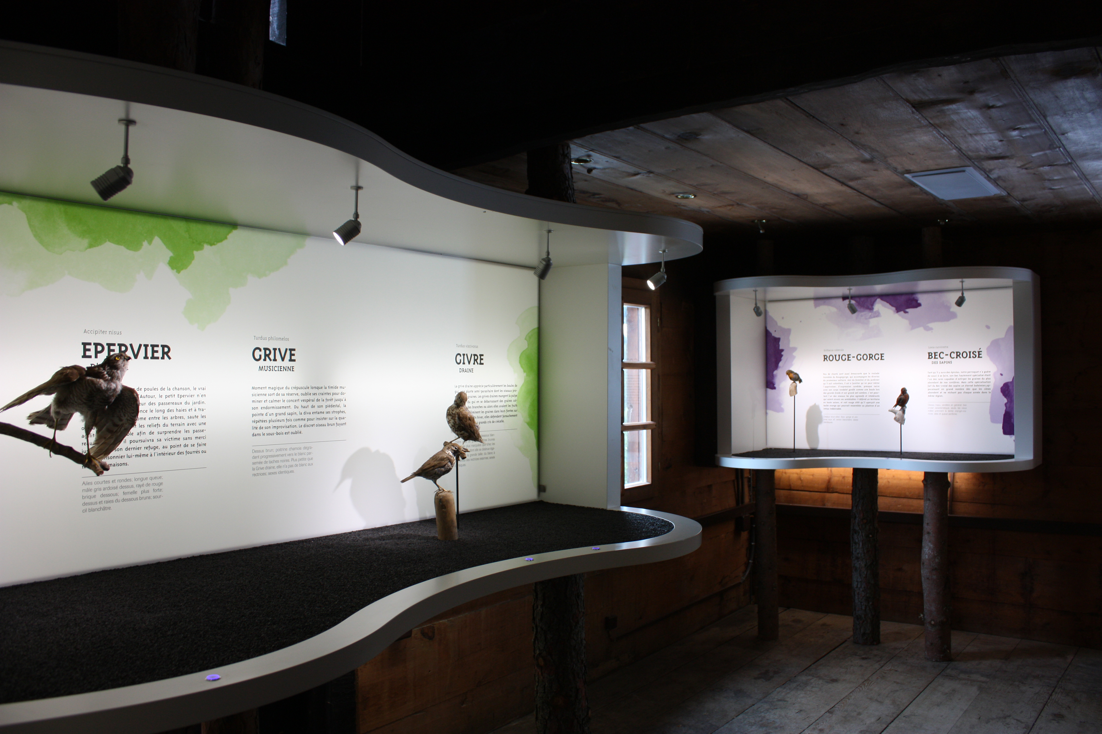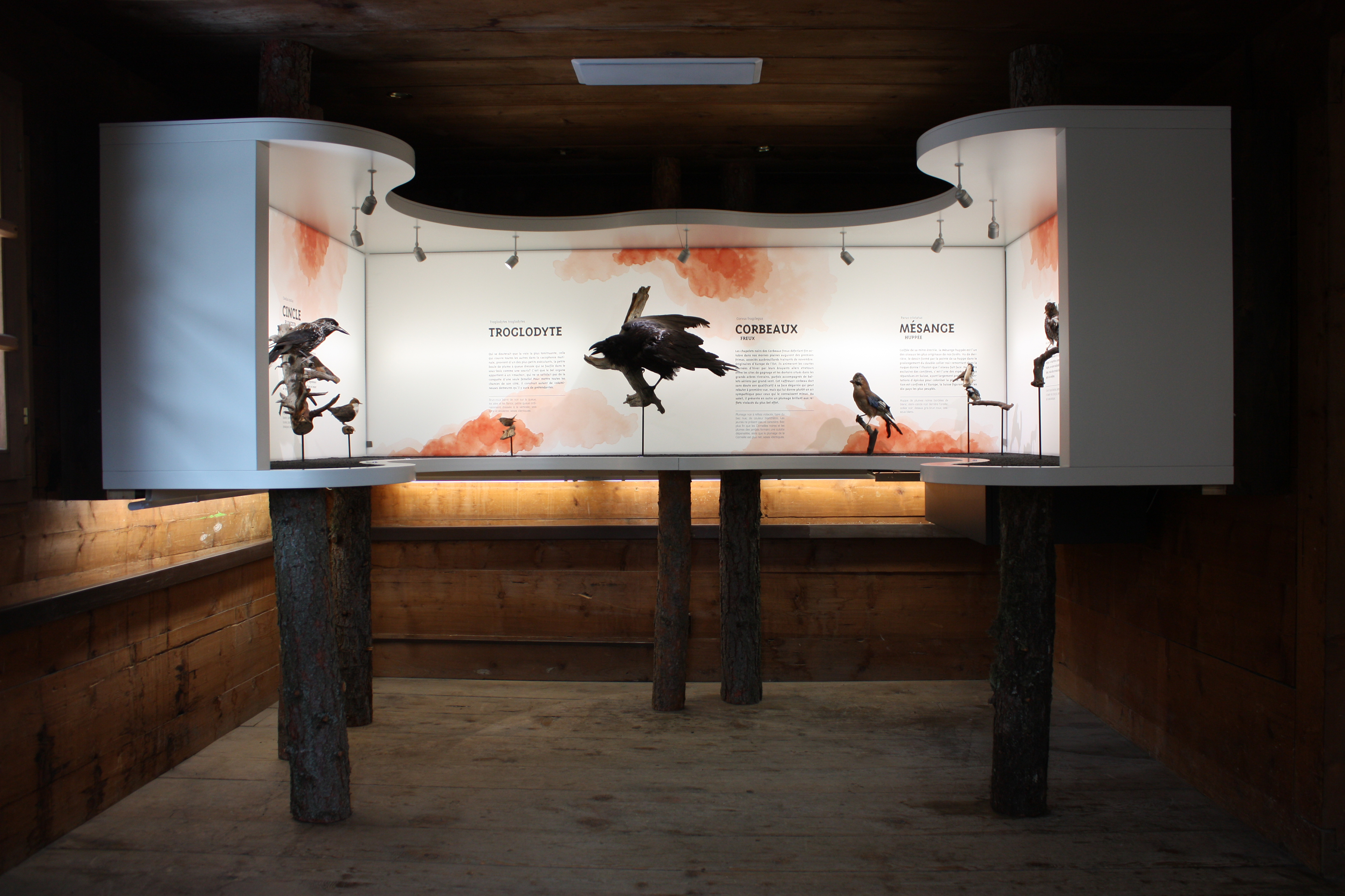L’exposition présentait, dans un design minimaliste, les espèces d’oiseaux qui peuplent nos forêts. L’exposition a été développée pour fournir une expérience complète, avec notamment la création d’une application pour smartphone présentant la faune et la flore valaisanne, et un dispositif interactif permettant d’écouter le chant de chaque oiseau présenté.