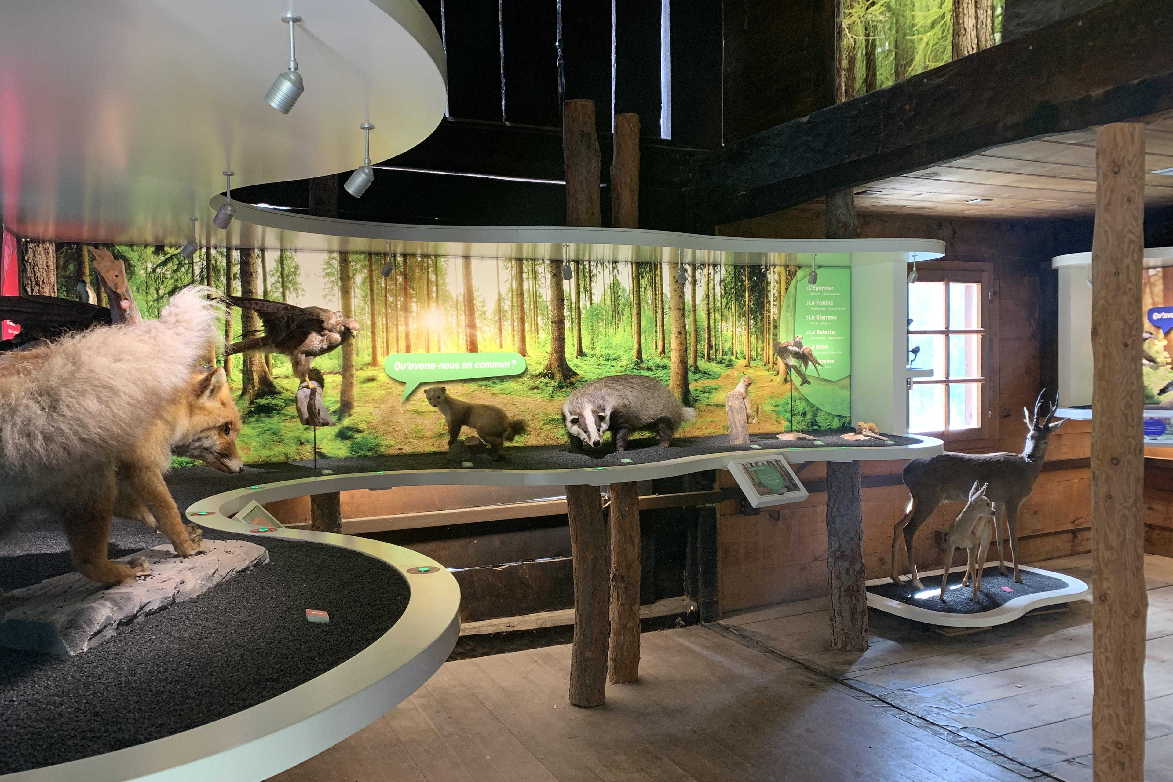 Conception et réalisation de mobilier d’exposition pour la Maison de la Forêt, à la Tzoumaz.