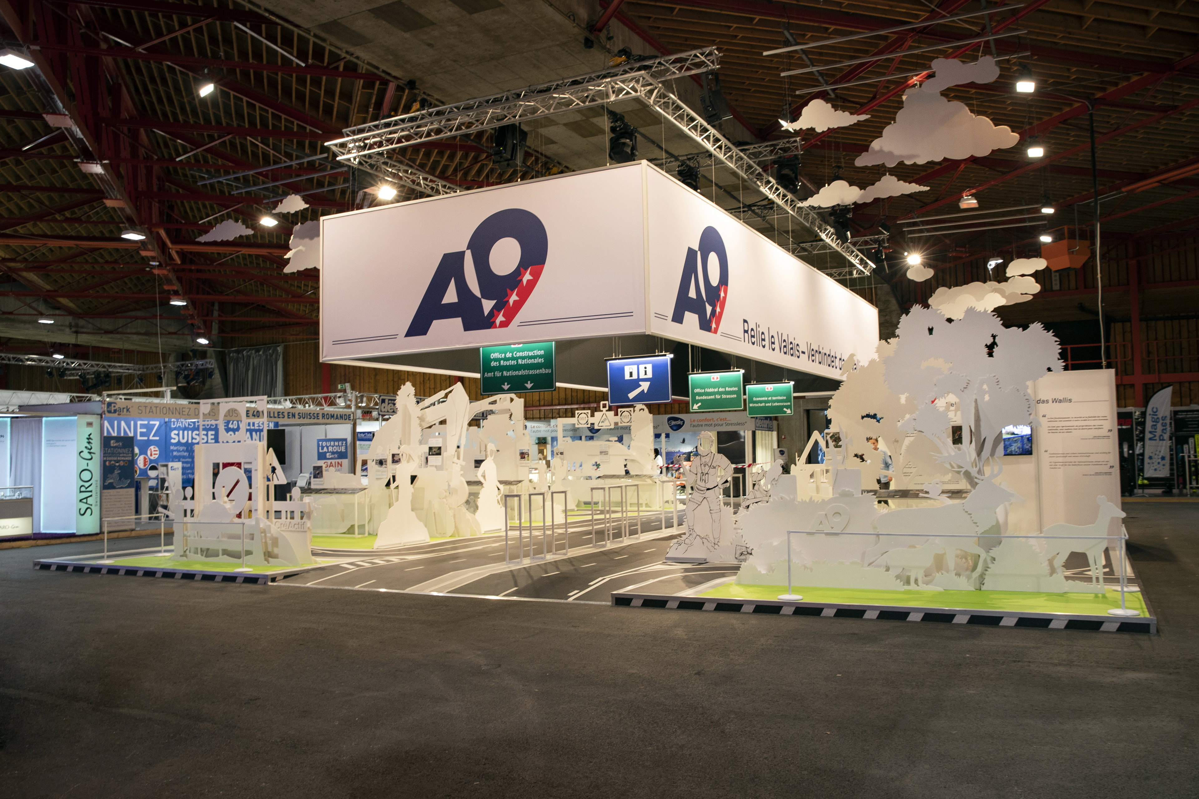 L’autoroute A9 se présente à la population valaisanne avec un stand innovant et contemporain.