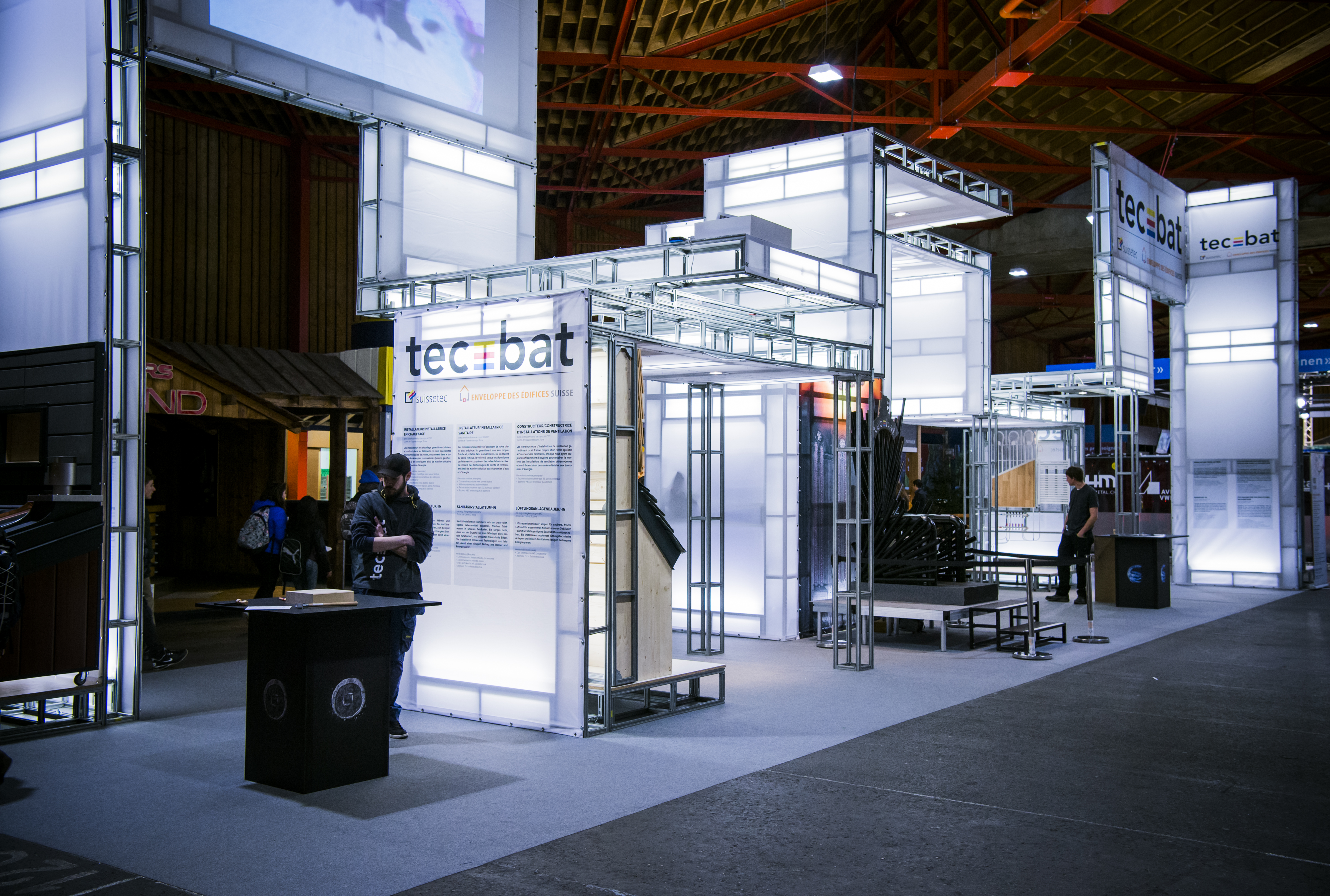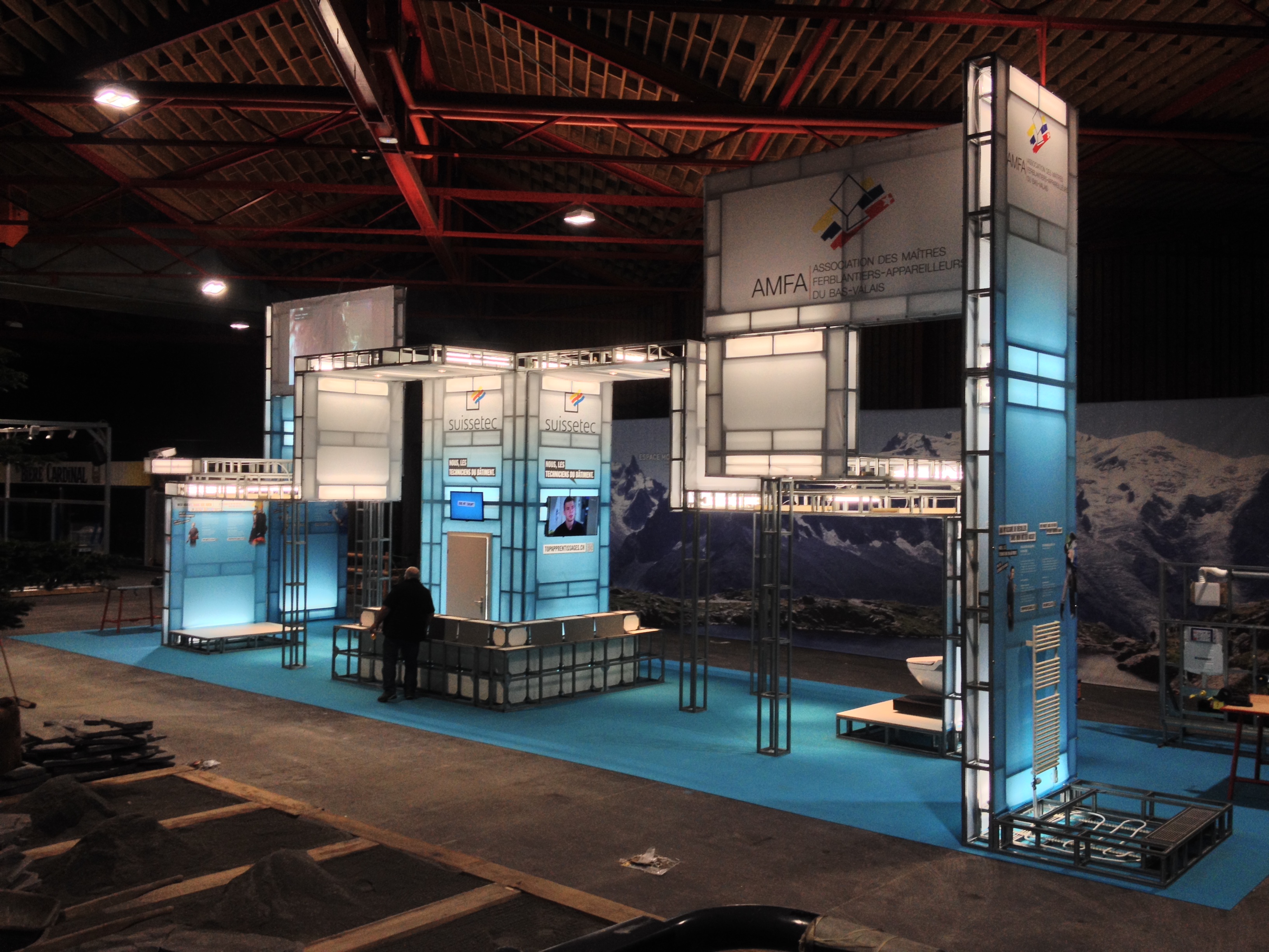 Conception et réalisation d’un stand promotionnel pour l’association des métiers de la construction SuisseTec lors du rendez-vous « Your Challenge », à Martigny.
