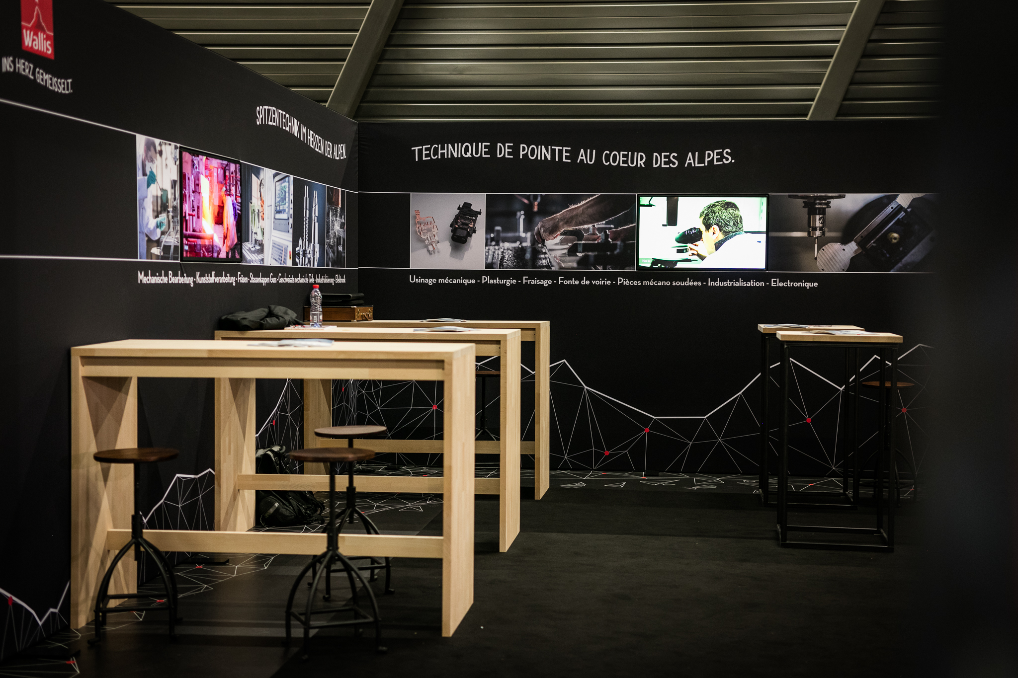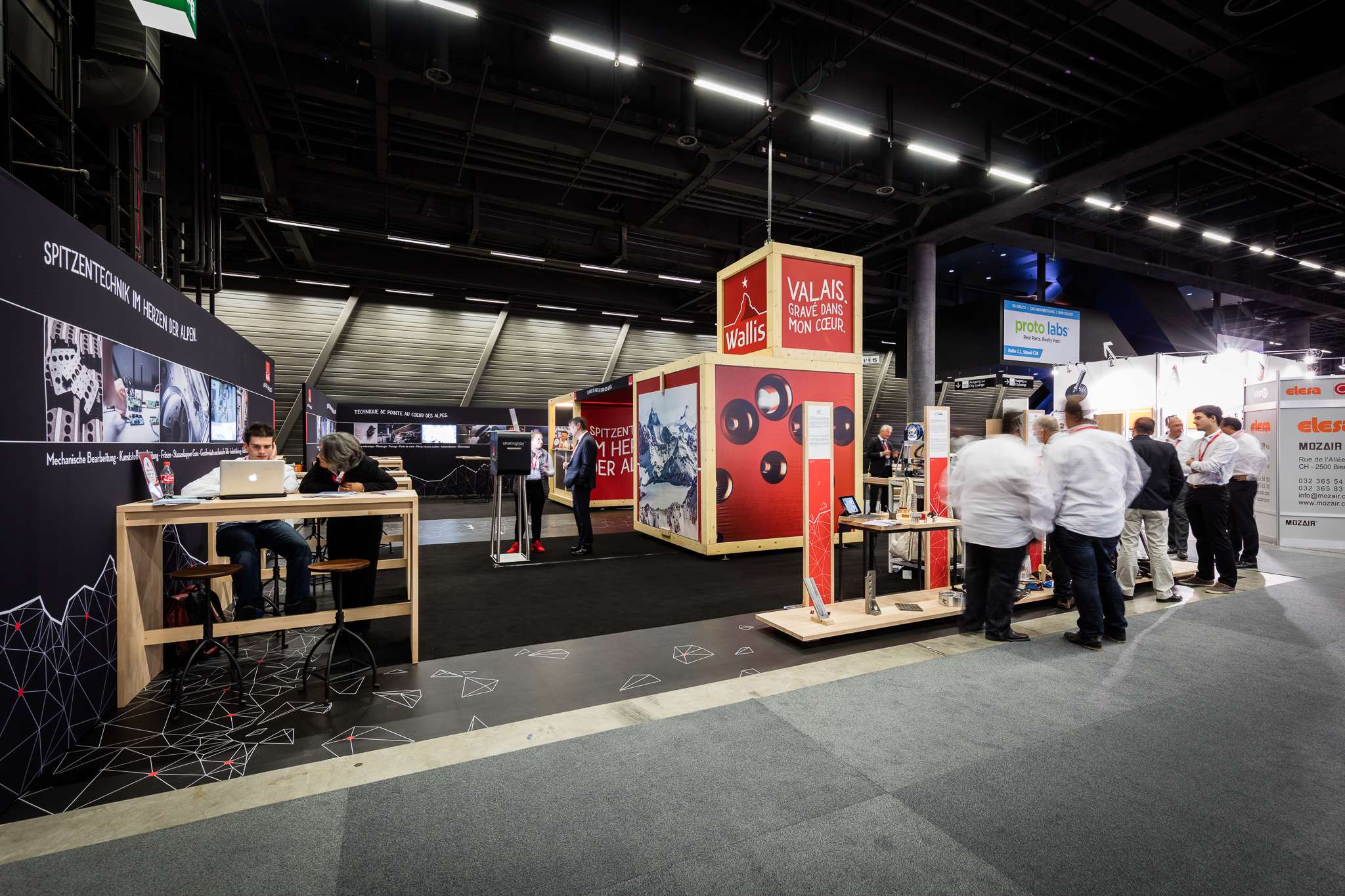 Conception et réalisation d’un stand promotionnel pour Valais Wallis Promotion à l’occasion du Salon SwissTech, à Bâle.