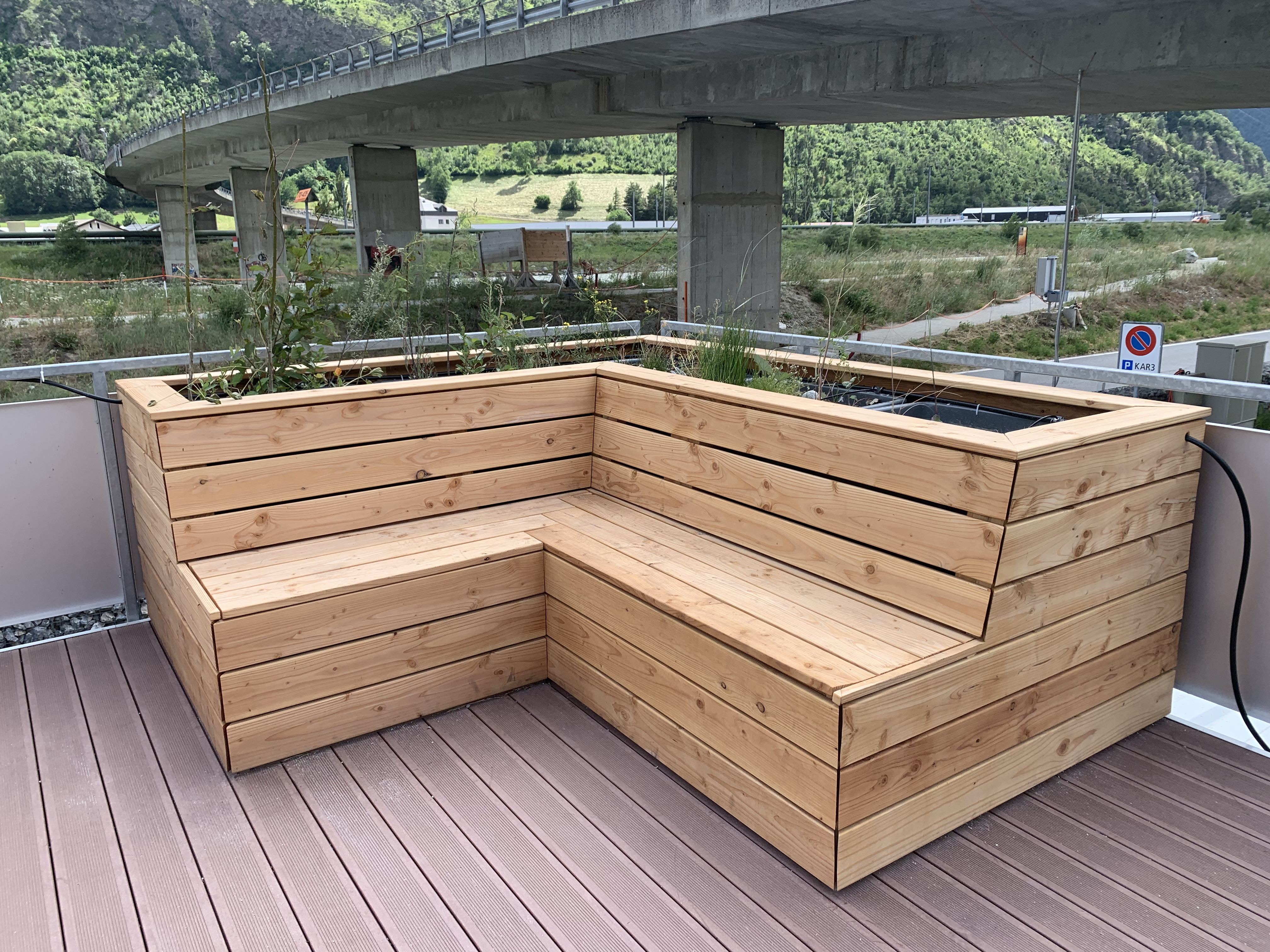 Conception et réalisation de mobilier pour l’aménagement de la terrasse du centre d’information Rhône 3.