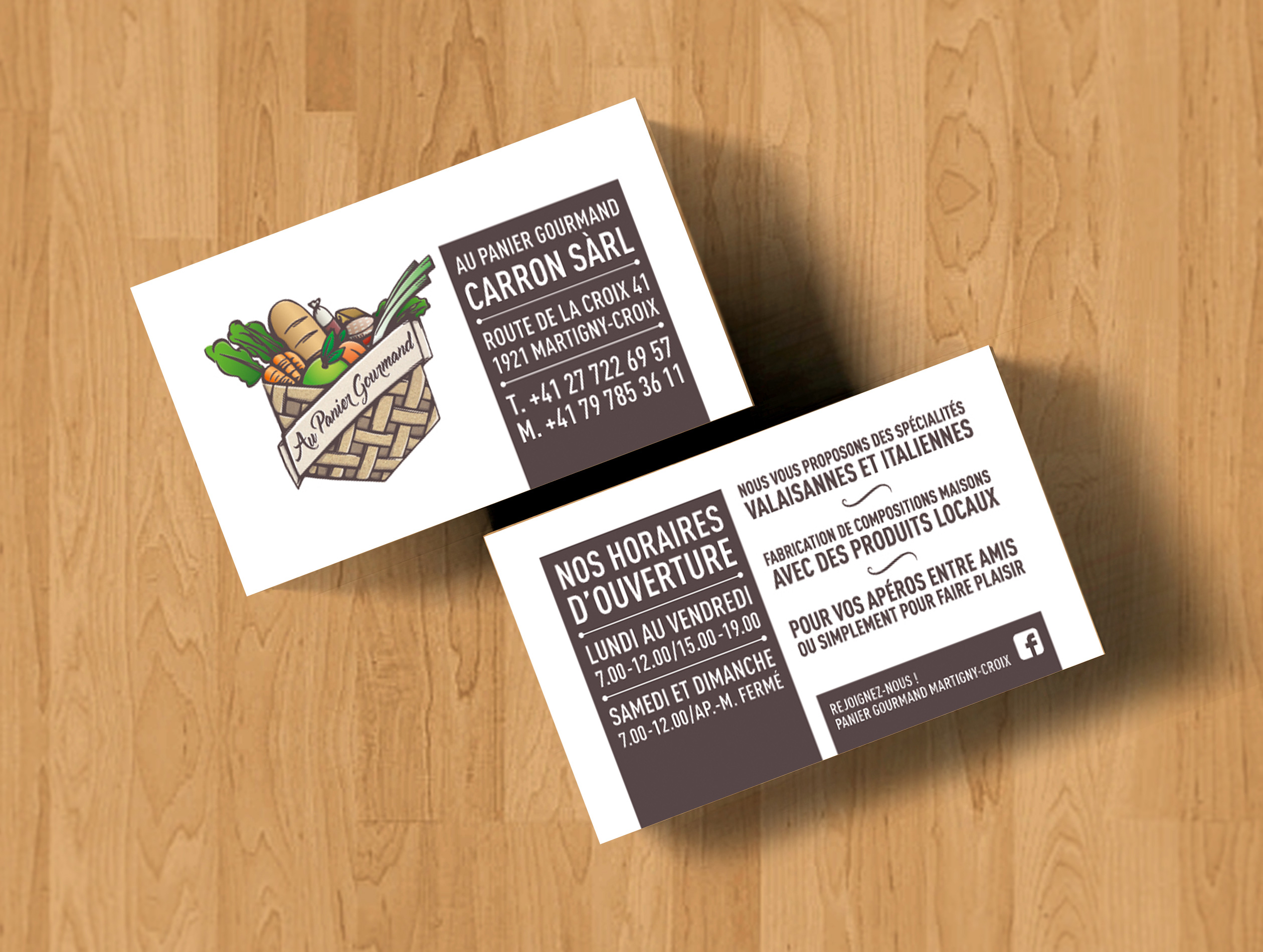 Réalisation de l’identité visuelle de l’épicerie de quartier « Au Panier Gourmand » située à Martigny-Combe.