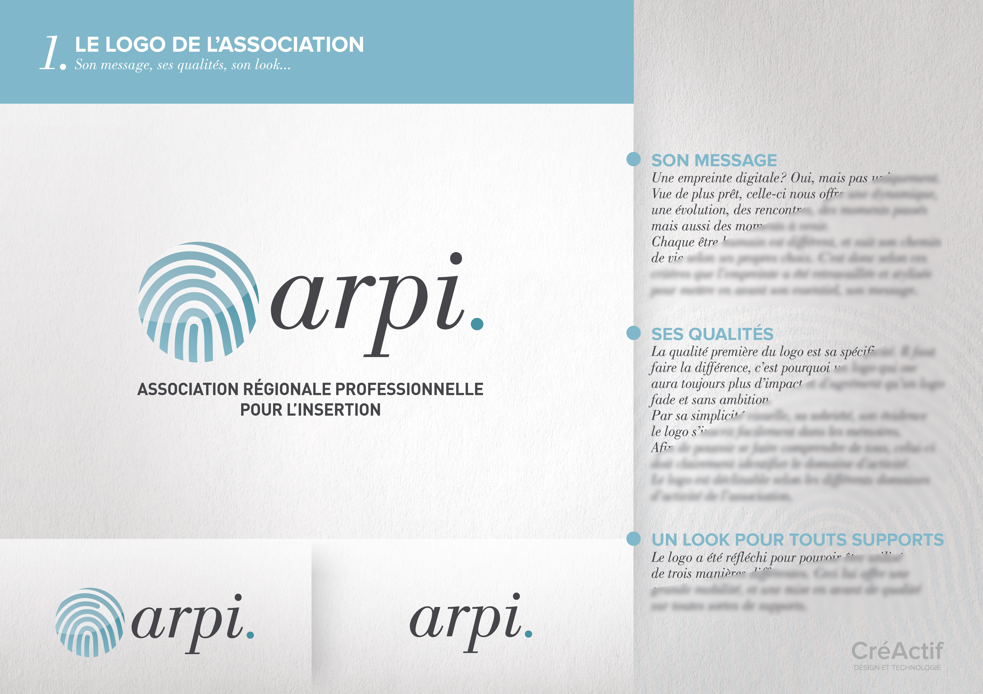 Réalisation de l'identité visuelle pour l’Association Régionale Professionnelle pour l’Insertion (ARPI), à Martigny.
