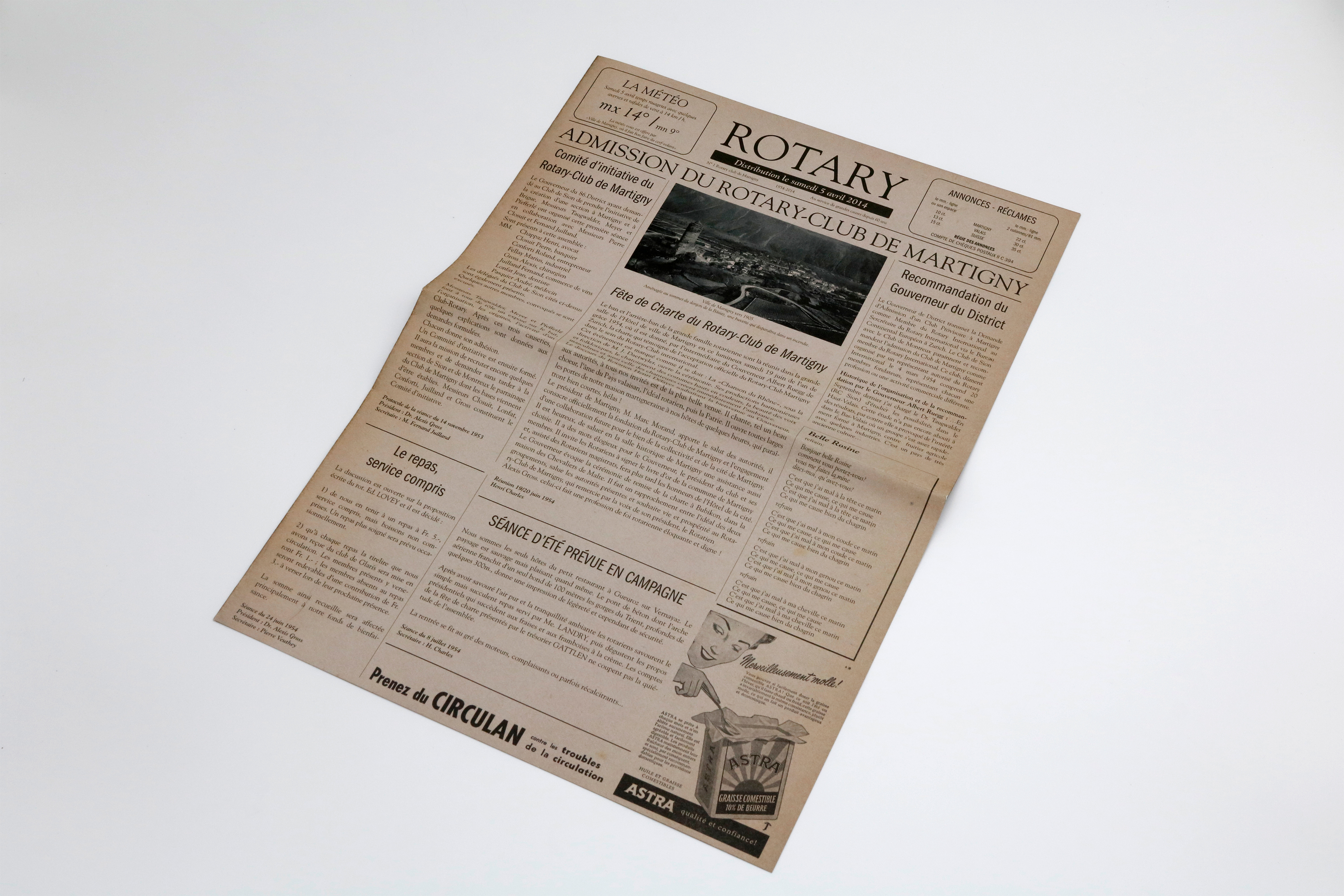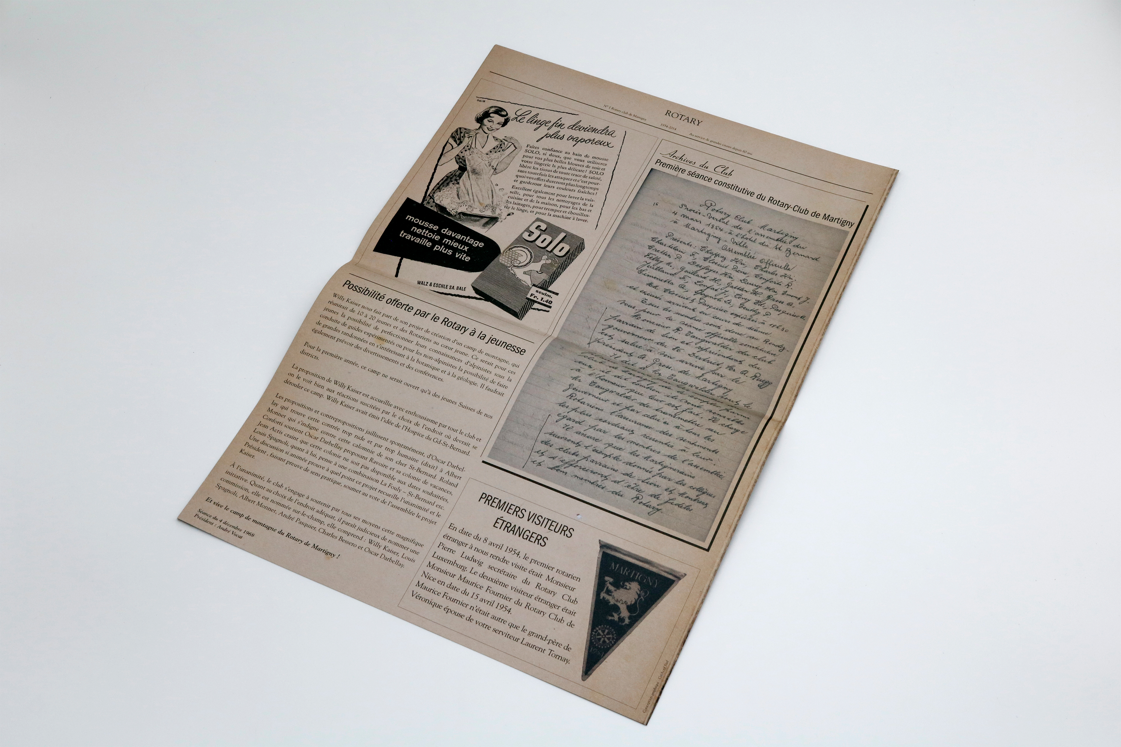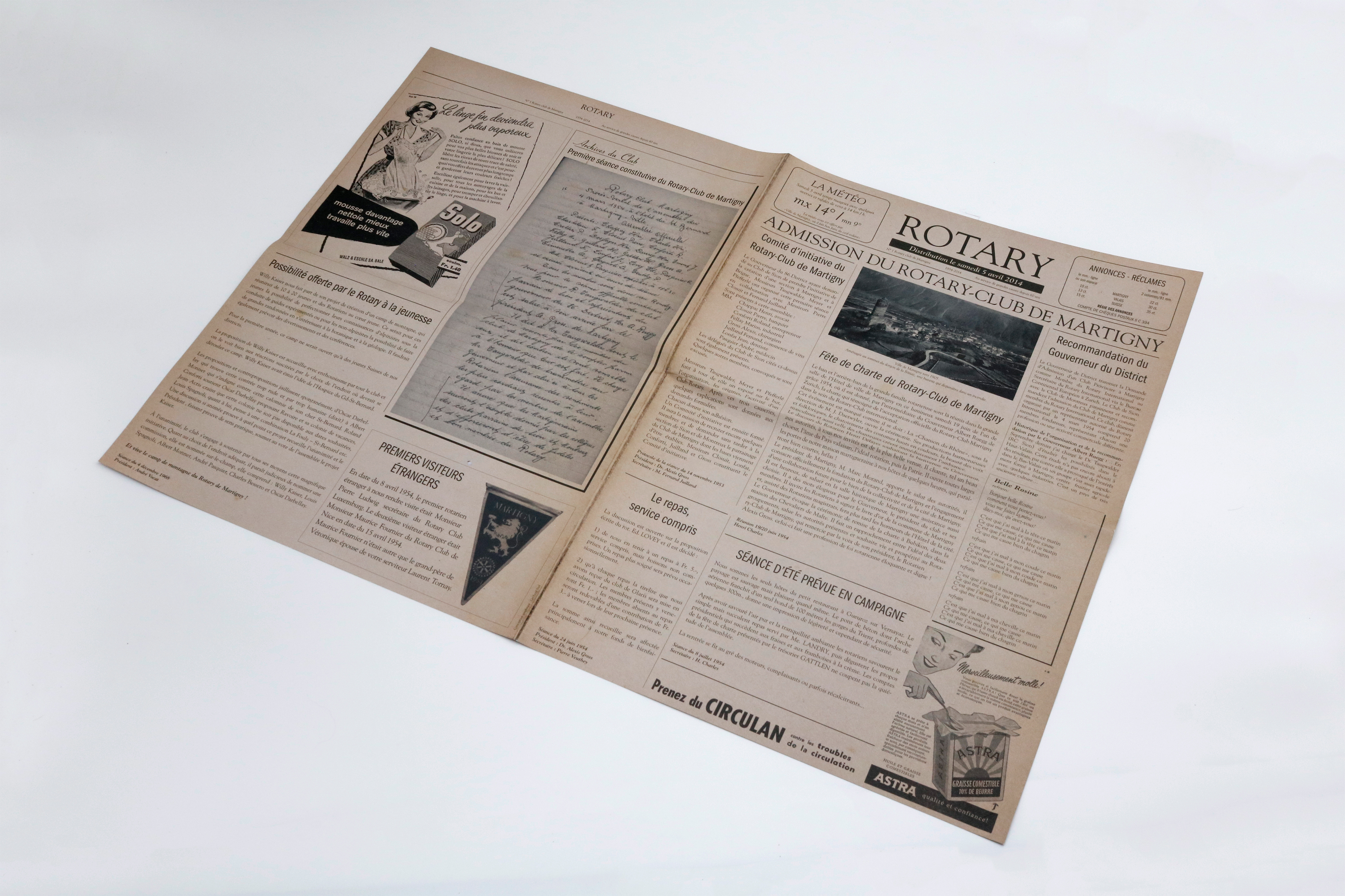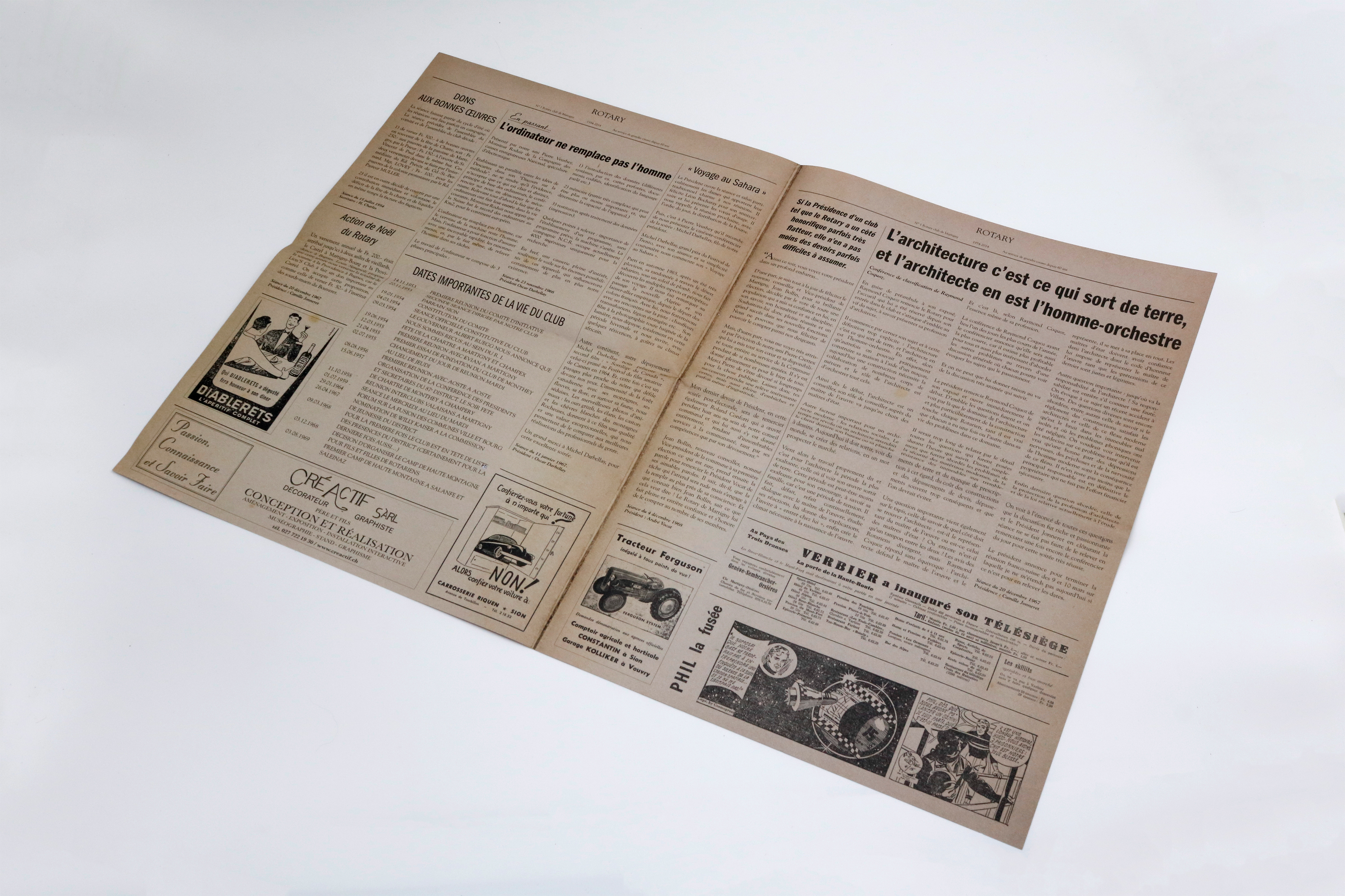 Création d’un journal de type vintage pour le Rotary Club de Martigny pour fêter leur 50 ans. Le journal retraçait les événements marquants du club entre 1954 et 2014.