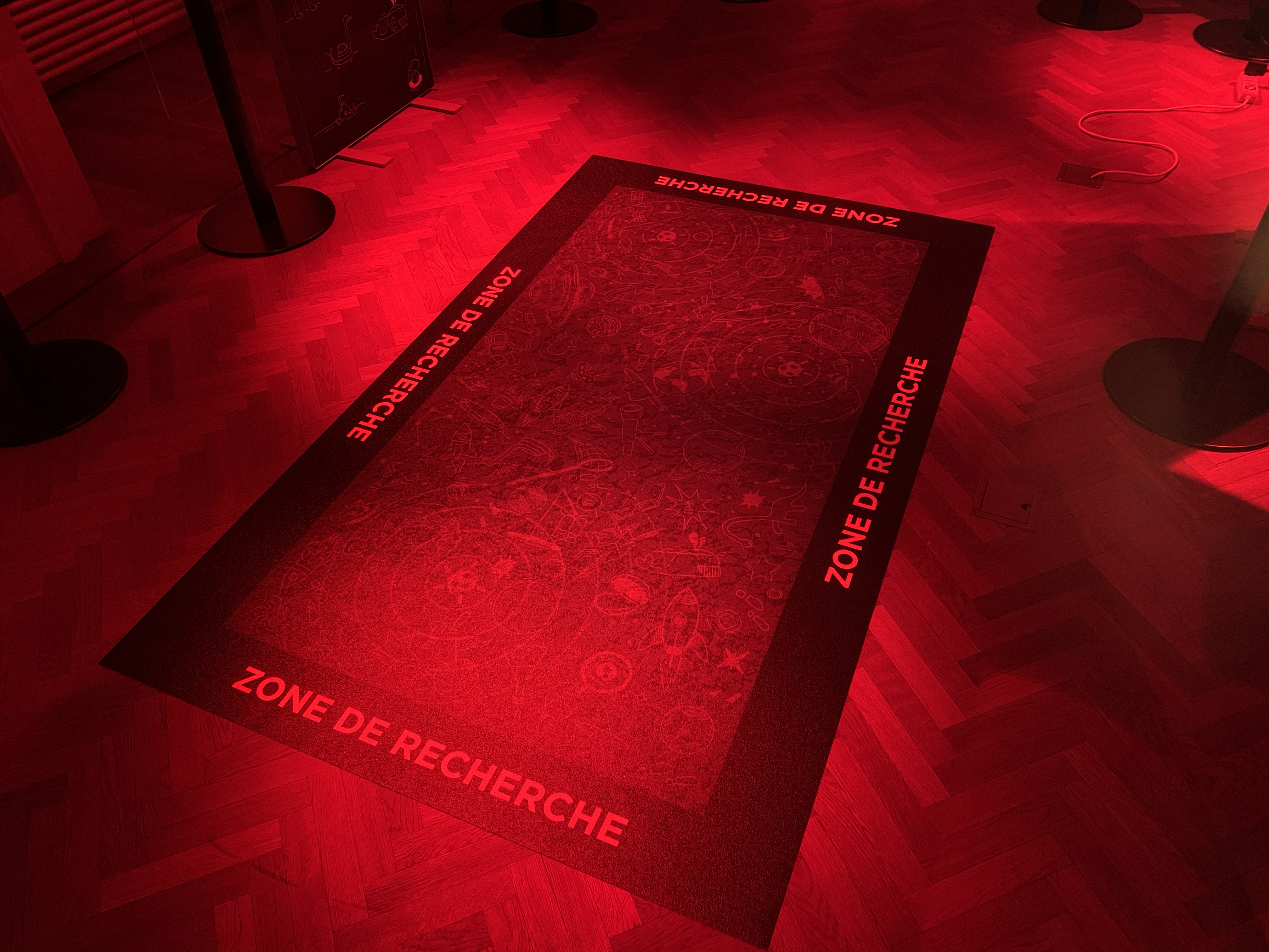 Grâce à ce tapis, les visiteurs pouvaient se mettre dans la peau d’un chercheur de météorites; soit à l’aide d’un bâton aimanté soit à l’aide de lunettes spéciales.